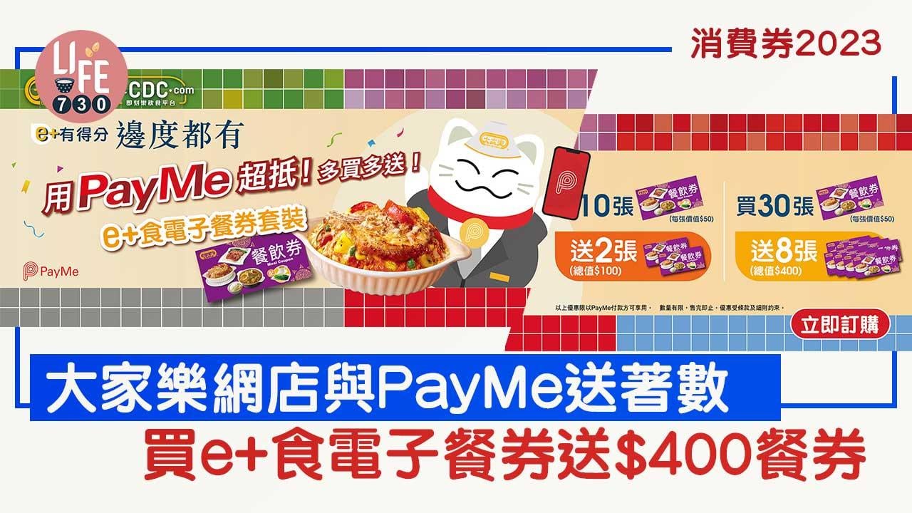 消費券2023|大家樂網店eatCDC.com 與PayMe送著數 買e+食電子餐券送$400餐券