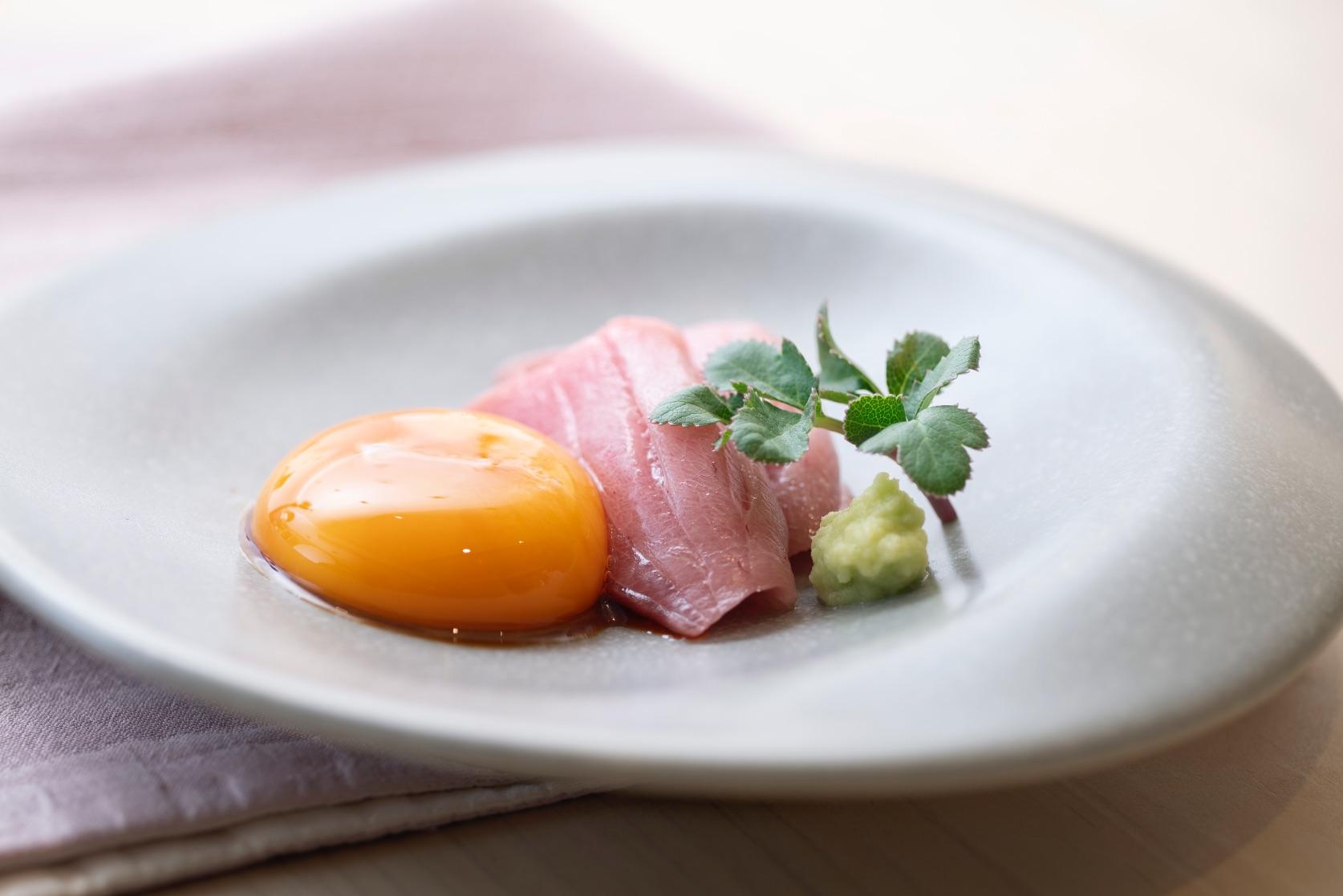 Hiroki親自設計的19道菜春季大廚發辦,展現了日本人對季節時令的重視,正值春季,主廚以時令的食材入饌,不時不食。全新菜式保留江戶前風格,並注入現代歐洲烹調技巧,驚喜滿載。新menu以小肌魚黃身壽司揭開序幕,來自佐賀的小肌,以傳統方法用醋醃漬,再配上長芋和醋蛋黃醬,代替了傳統壽司飯的做法,清新的口感加上裝飾食用花,絕對是IG打卡首選。來自冰見港的吞拿魚BB刺身,配上自家醃漬蛋黃醬油,濃厚的蛋黃香氣,為嫩滑的吞拿魚BB刺身增添細膩口感。