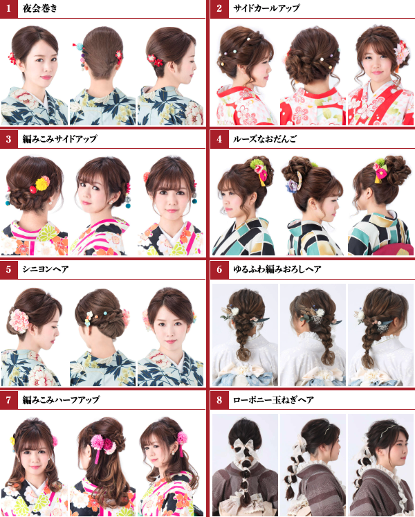 蕾絲裝飾搭配和服・浴衣租借:和服/浴衣、蕾絲裝飾、腰帶、二趾襪、草履鞋 、日式提包、髮型設計八選一(包含髮型用絲帶)。