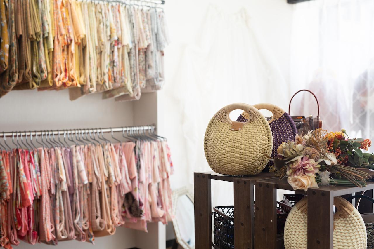 清新浴衣:浴衣、腰帶、和風小提袋、木屐、工作人員協助著裝、腰間飾品