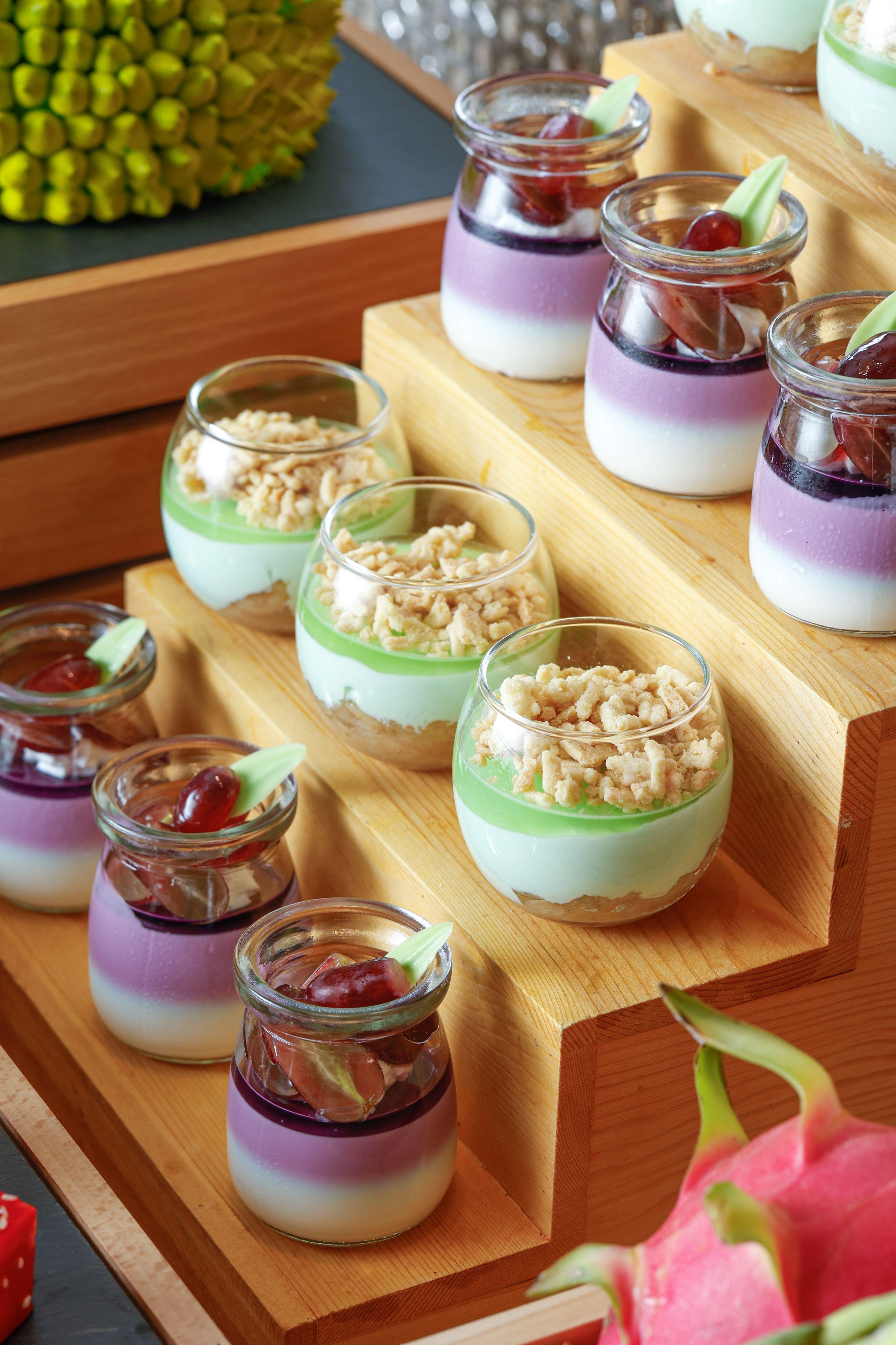 紅磡都會海逸酒自助餐一向出名高質!酒店近日以「仲夏海鮮夜市集」為主題,推出多款海鮮美食!今期自助晚餐主打各款正值產季的避風塘海鮮,包括避風塘炒辣麵包蟹、辣酒煮東風螺、椒鹽瀨尿蝦、黃金蝦、金銀蒜蒸扇貝等。每位惠顧自助晚餐之賓客可享鮑魚花膠螺頭佛跳牆乙份。此外,初夏步至,餐廳亦推出多款以時令水果入饌的菜式,不負盛夏滋味。特別推介蜜瓜凍湯、燴加州提子牛肋肉、草莓醬汁烤豬排骨、香橙孜然香草燒春雞等,甜品則有熱情果石榴奶凍、熱情果菠蘿撻、芒果金柚肉楊枝甘露等,味道清新,一掃暑氣!還有不同的特色榴槤甜品,口感層次豐富,讓人一試難忘。