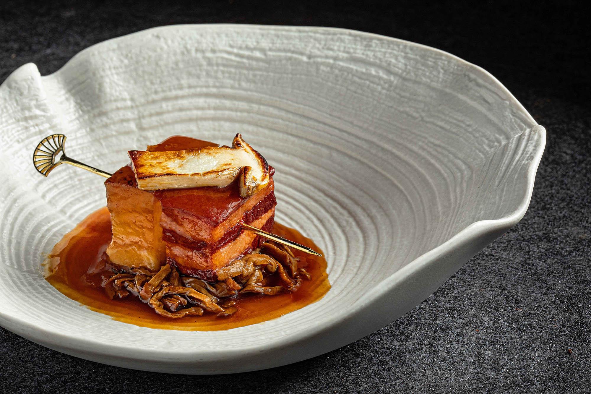 美味牛肝菌琉璃東坡肉($148)─師傅以燜至軟腍的冬瓜取代肥肉,幾可亂真,整塊「東坡肉」置於乾牛肝菌上,再淋上用鮮牛肝菌及肉汁調成的醬汁,濃郁鮮美,兩位師傅玩味十足之作。