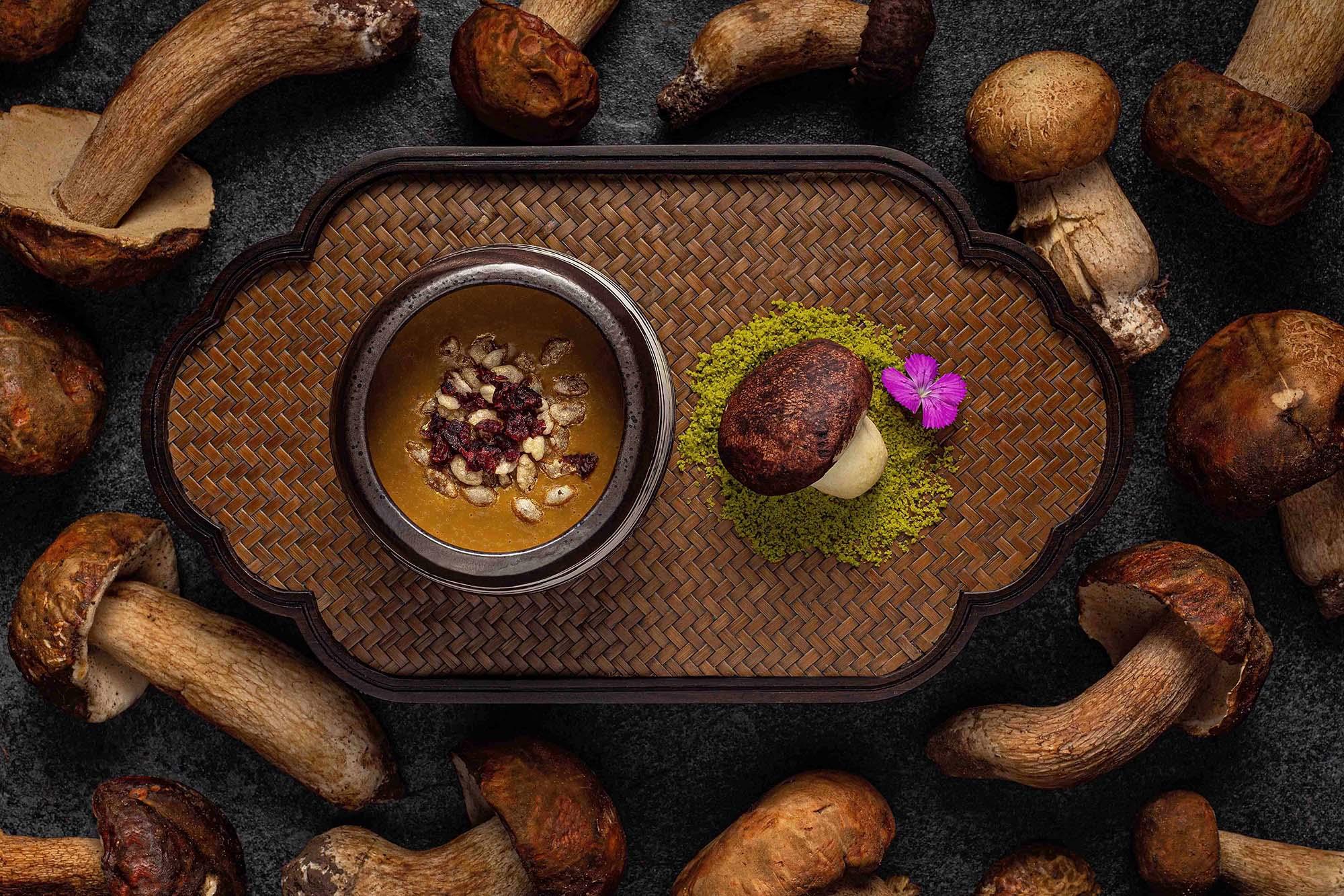 正值盛夏,雲南野生菇菌的當造季節,正所謂不時不食,米芝連一星中菜萬豪金殿行政總廚鄧家濠與菇菌達人陳小麒師傅來個季節限定四手聯乘,用上風味獨特且營養價值豐富的野生菇菌,合力炮製出糅合古今的時令養生菇菌菜式。