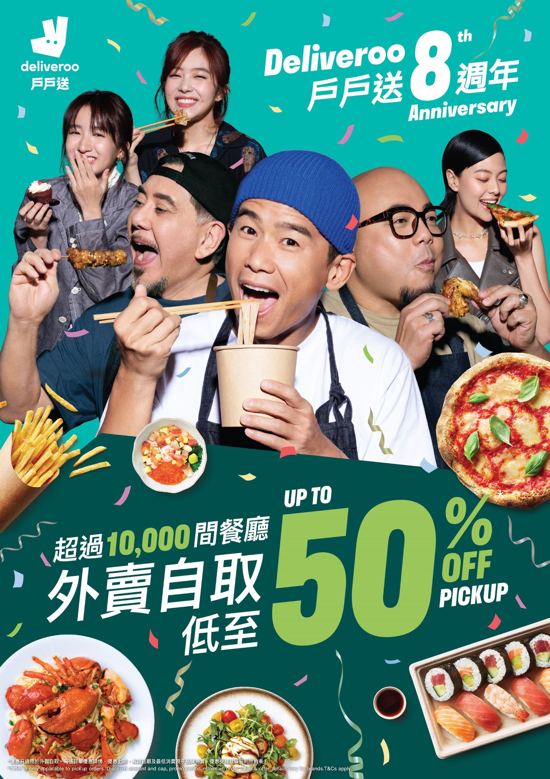 除了推出期間限定活動,戶戶送為慶祝八週年期間更將提供多項全新優惠包括由 2023年10月23日起,三個星期內於戶戶送平台上逾萬間餐廳選擇,訂購外賣自取可享高達50%折扣**;隨後由2023年 11月13日起的兩個星期,顧客於指定餐廳可享下五張訂單滿 HK$100 減 HK$50 優惠^,區區顧客都可享用優惠,一齊慶祝戶戶送八歲生日!