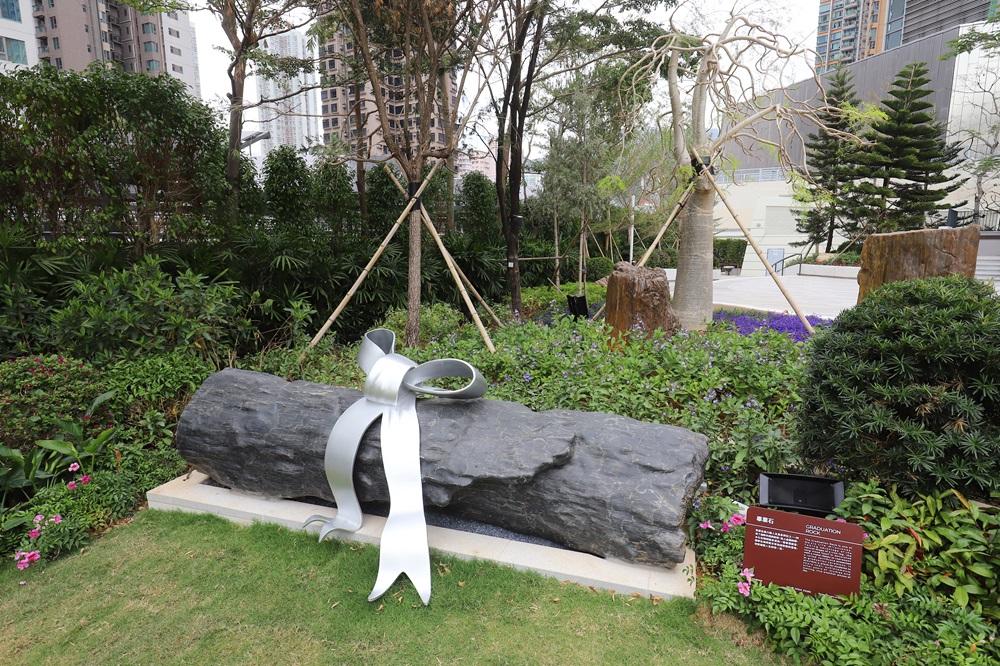 畢業石:利用了樹幹天然的形狀,加上金屬絲帶,木化石搖身一變成為一紙畢業證書,在此和家人、同窗分享完成學業的喜悅,展開人生新篇章。