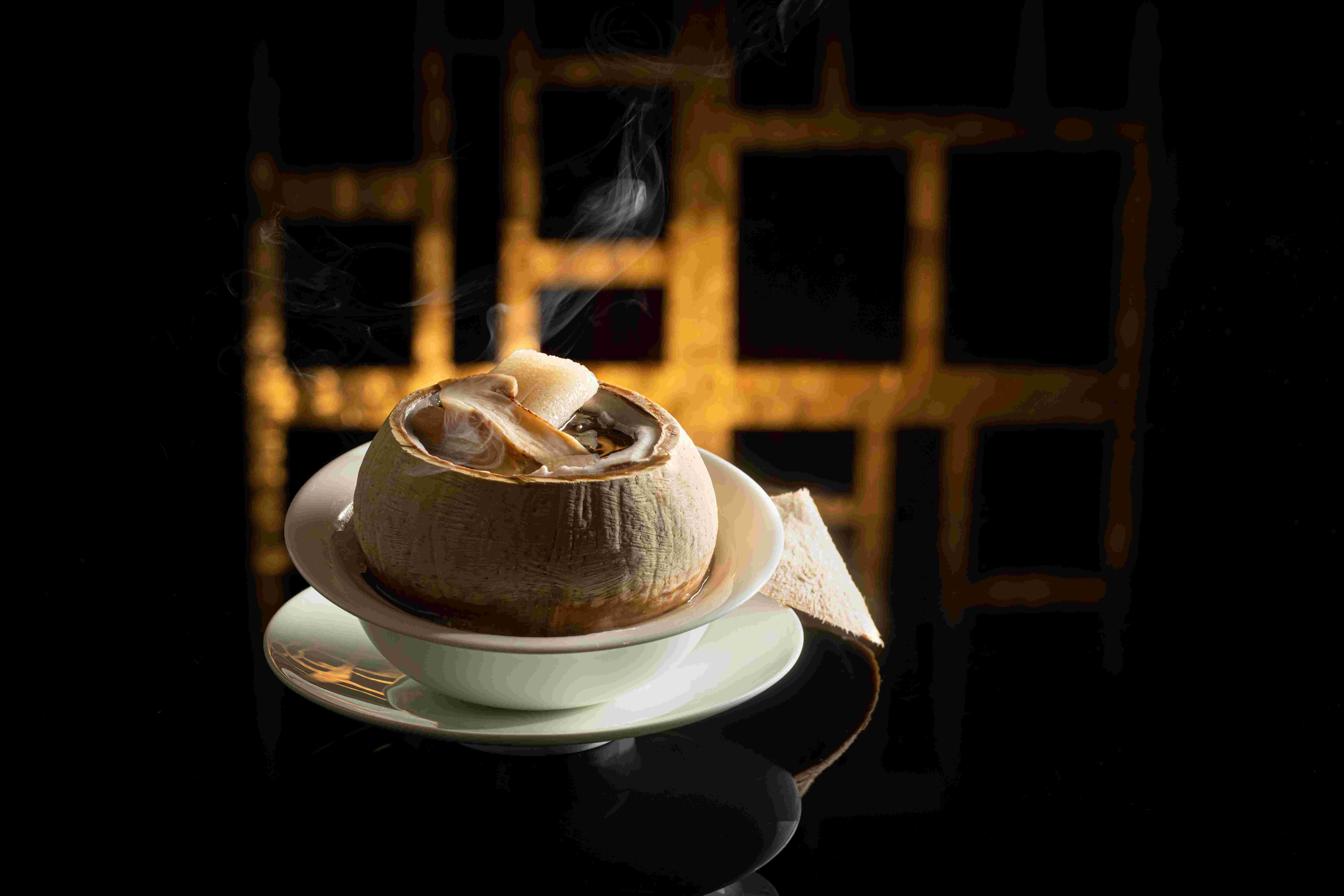 套餐當中精選菜式包括「原個椰皇菜膽天白菇竹笙清燉松茸」甘醇上湯入口滑順,松茸清香鮮甜,具有滋陰養胃的功效;「蠔皇扣原隻南非鮑魚拼堂弄花膠」以堂弄的工藝在賓客面前處理,鮑魚被輕輕烹煮至軟嫩,花膠質感細膩,搭配蠔皇醬汁,進一步為菜式提鮮;「明閣自家製XO醬油雞樅焗本地龍蝦」以本地小青龍蝦為主要食材,新鮮龍蝦肉質鮮嫩彈牙,並配搭明閣招牌自家製的XO醬,師傅特意再加入油雞樅,濃郁風味與XO醬的香辣味道相得益彰,提升整體的層次感。「椰汁蘆薈官燕糕」清潤的椰汁蘆薈糕加上啖啖矜貴官燕,在LALIQUE高腳水晶杯的襯托下,尤其晶瑩剔透,是一道清香爽口的甜點。