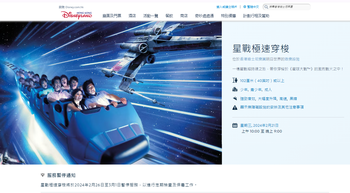 香港迪士尼樂園 5大遊樂設施暫停開放日子
