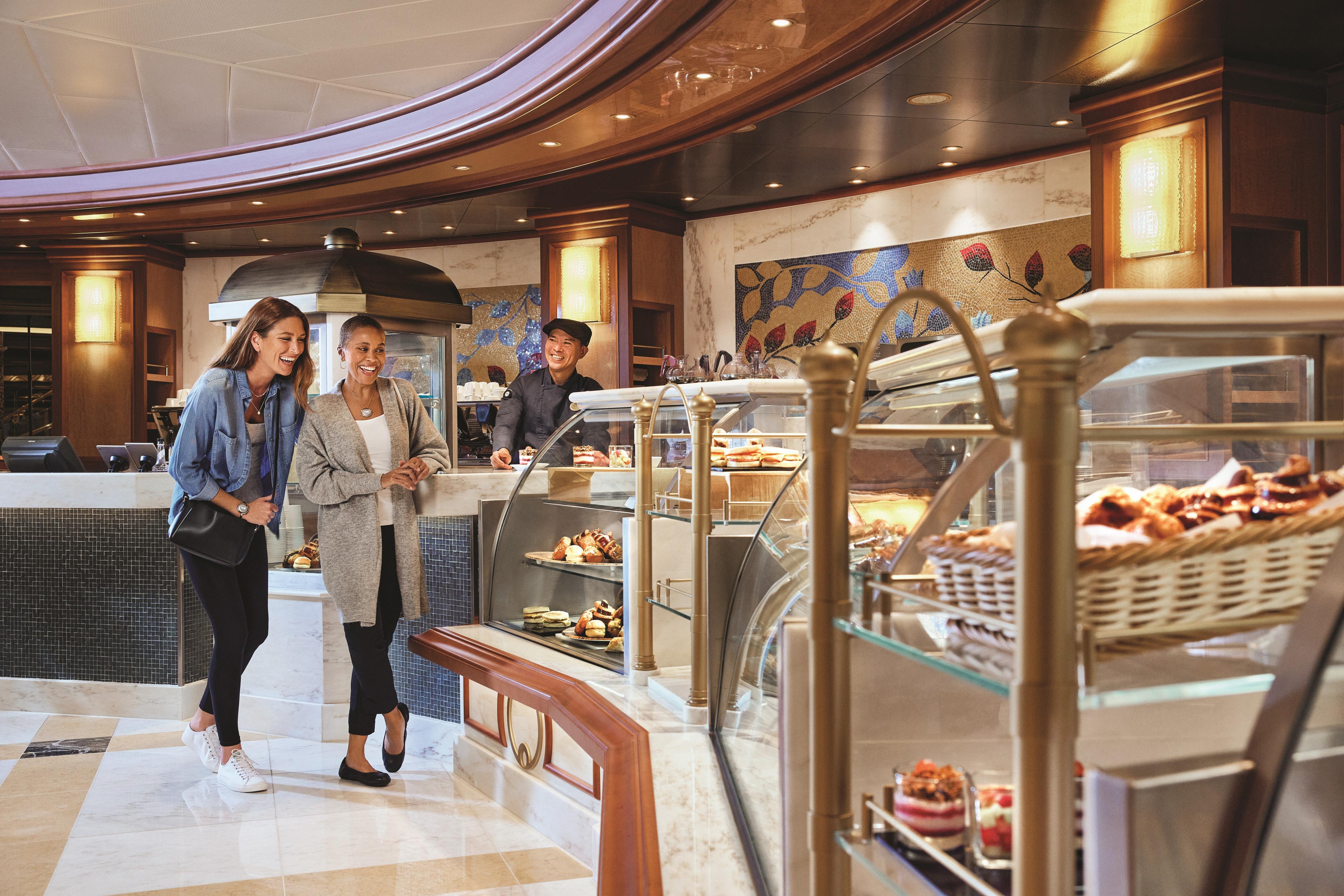 全天候營業的國際點心吧提供各式各樣的點心和飲品,另外環球美食自助餐廳提供豐富的食物選擇以滿足賓客對美食的要求;最後,來到皇冠海鮮牛排餐廳,以木質裝飾為主,搭配開放式廚房,是舉辦慶祝活動的不二之選。餐廳更被「今日美國」評為「最佳郵輪牛排館」,餐牌上的優質牛排和新鮮海鮮等多種特色美食任君選擇。