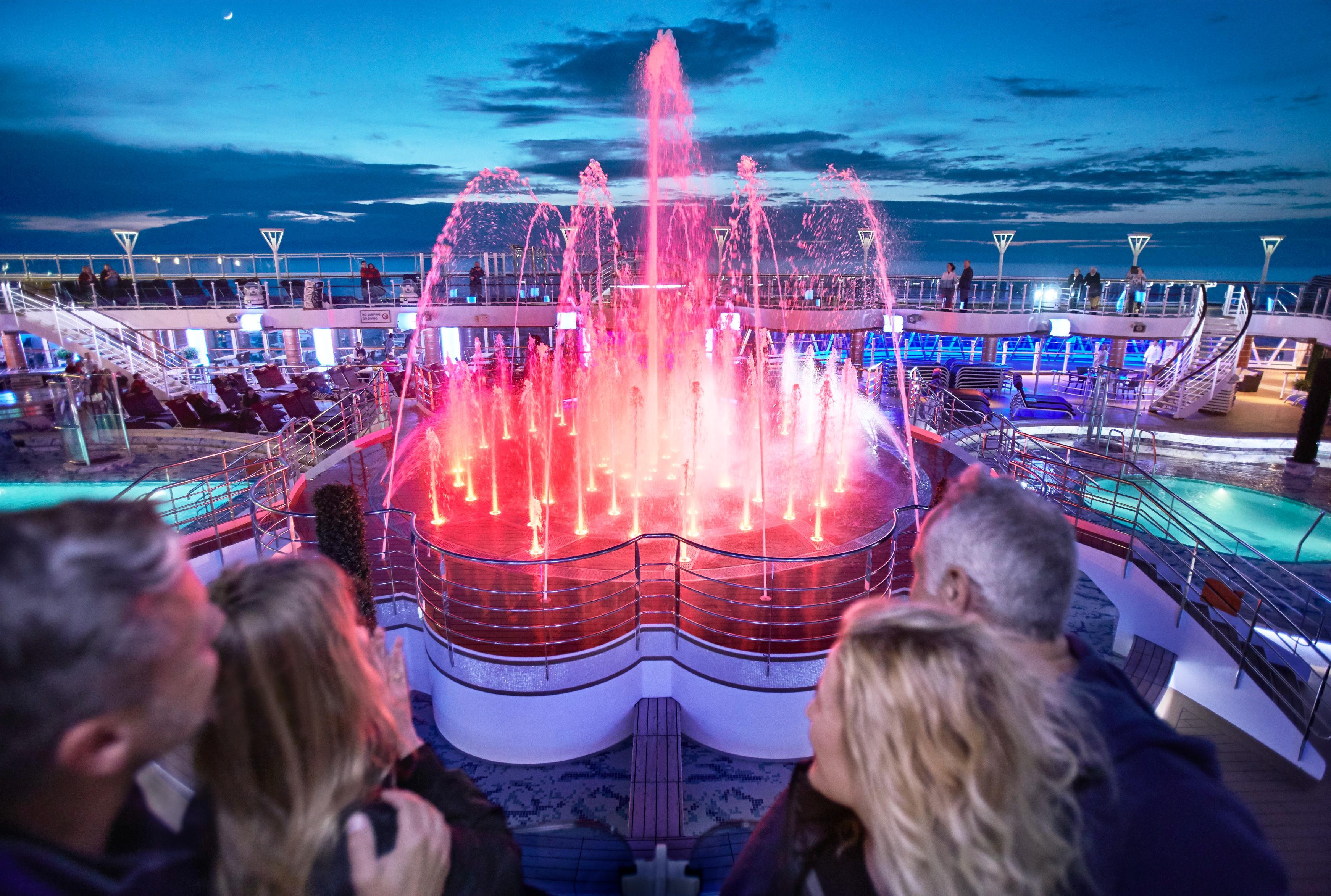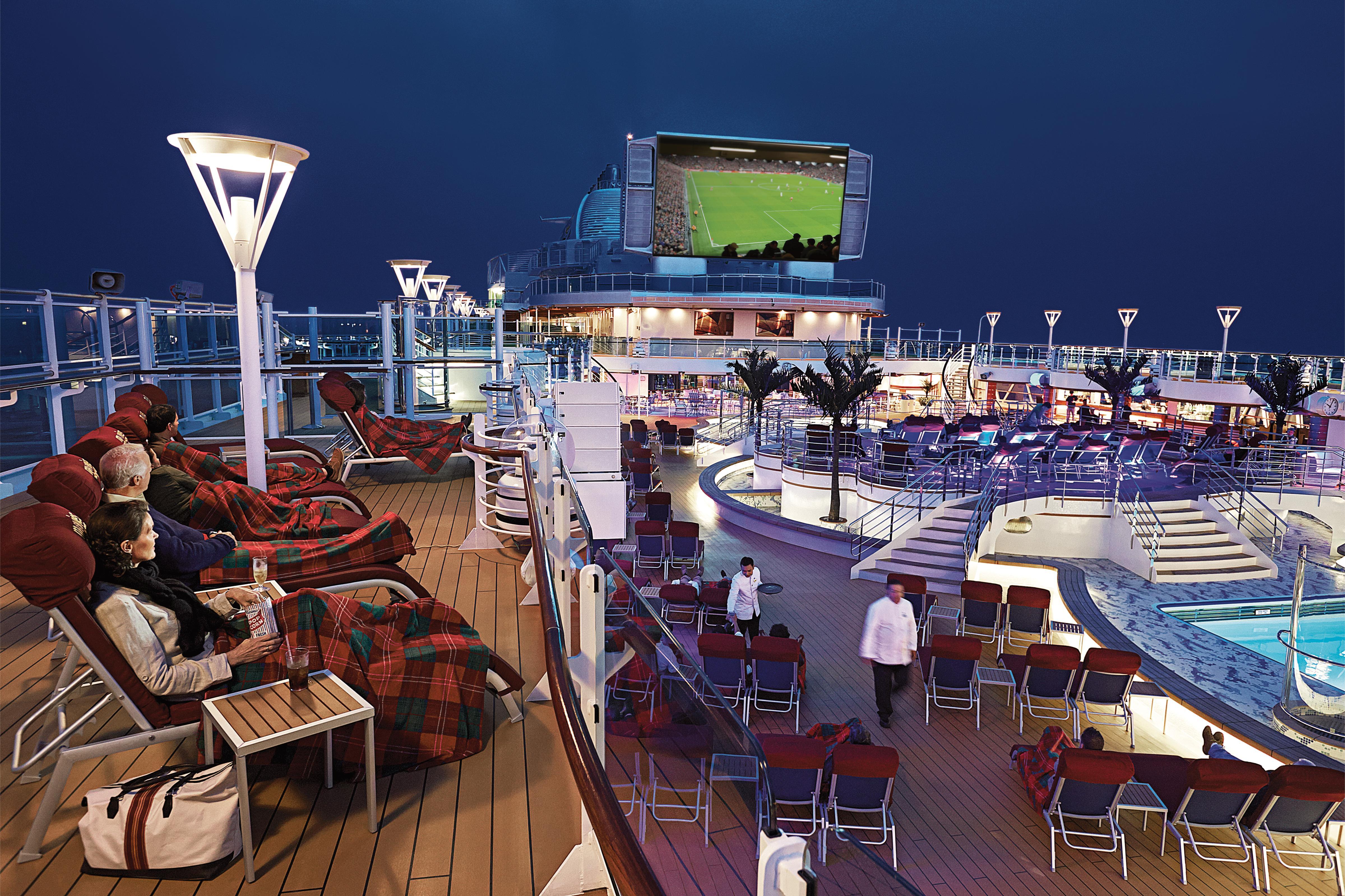 皇家公主號其中一個亮點,一定非公主聲光水影秀莫屬。這場盛大的視覺盛宴將華爾茲和芭蕾融合,噴泉在海上翩翩起舞。星空露天電影院是一個擁有露天池畔的電影院,設有300平方英尺的巨型螢幕,提供音樂會、體育賽事或荷里活電影。