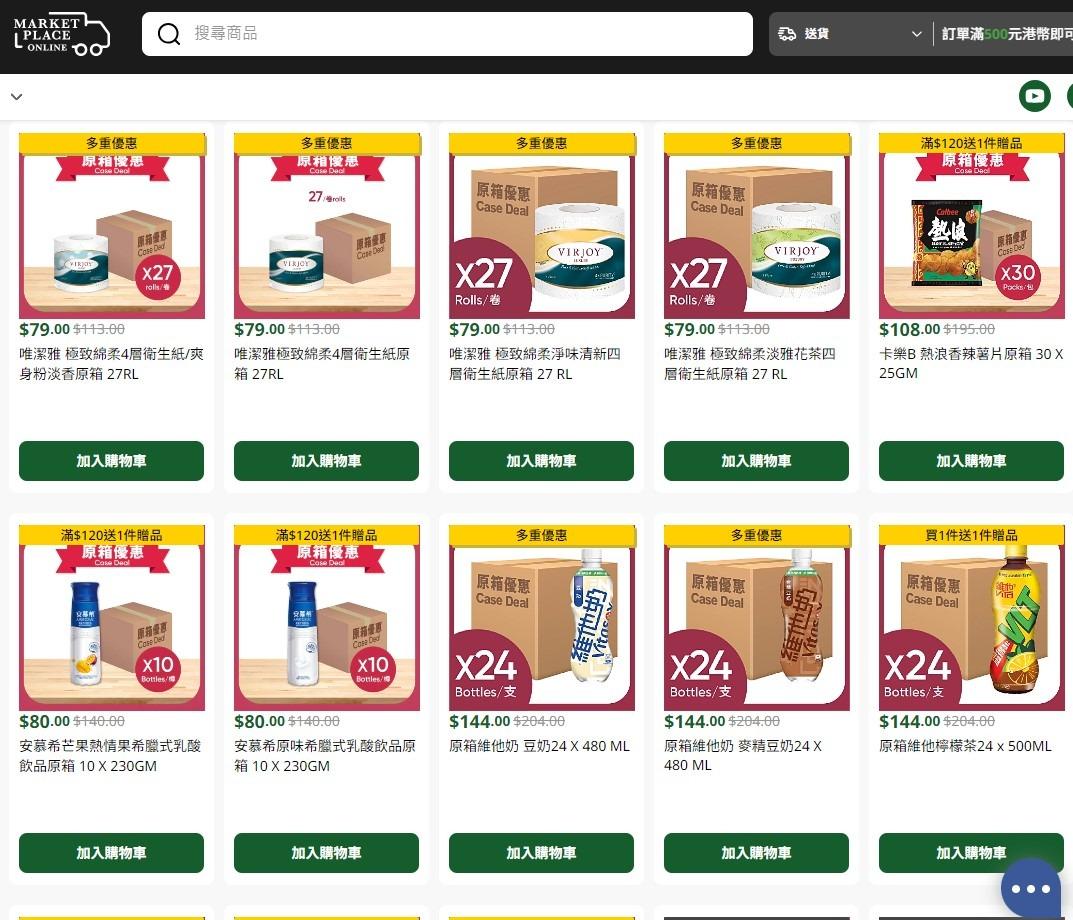 Market Place網店原箱以低至6折發售,無論汽水、飲品、零食及衞生紙等應有盡有 Market Place網店原箱以低至6折發售,無論汽水、飲品、零食及衞生紙等應有盡有