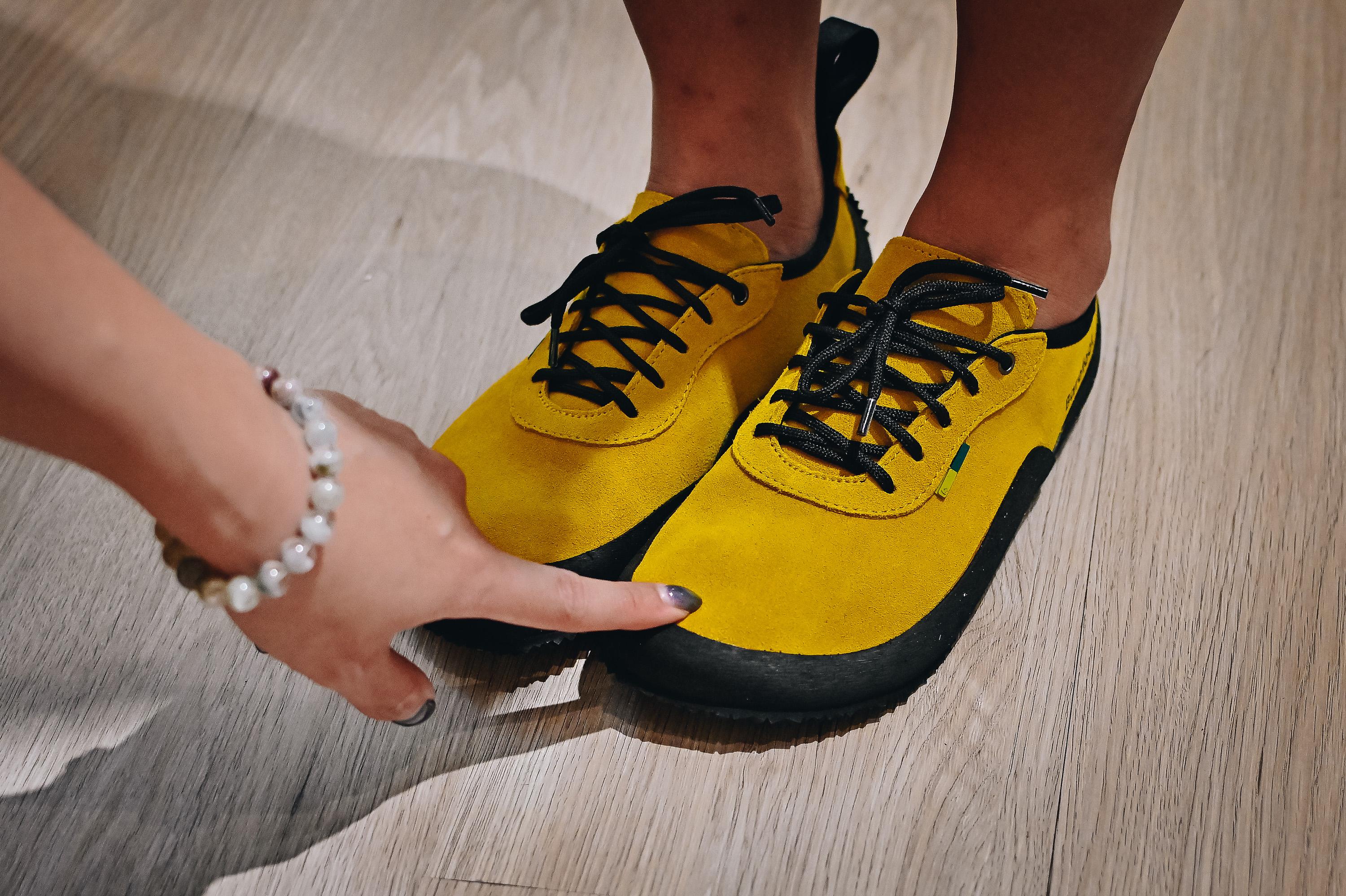 赤足鞋寬鞋頭的設計,讓腳有足夠空間向外伸展。