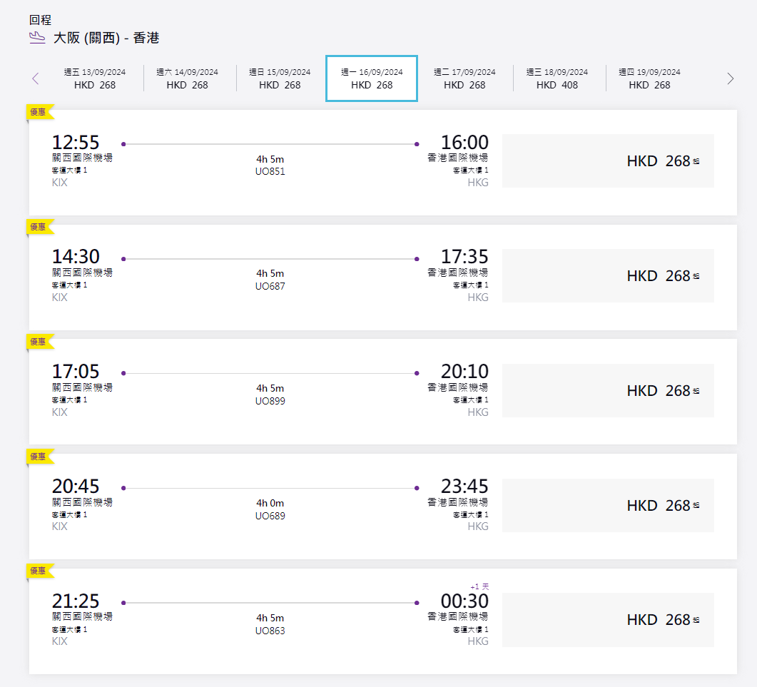 返回 生活 出版:2024-Jun-28 11:00 更新:2024-Jun-28 11:00 HK Express日本機票優惠 單程飛大阪$268起 明年3月前出發 分享: HK Express日本機票優惠 單程飛大阪$268起 明年3月前出發 又有機票優惠!HK Express限時推出日本機票優惠,單程飛大阪只需$268起,明年3月前出發。即睇詳情! HK Express限時推出日本機票優惠,單程飛大阪只需$268起,來回連稅$1,427起。出發日期至明年3月14日,包年聖誕、跨年及櫻花旺季。想去大阪的你一定要搶先預訂! 預訂日期:2024年6月28日 - 6月30日 旅遊日期:2024年8月25日 - 2025年3月14日 預訂HK Express大阪機票 ADVERTISEMENT送BOC Pay+ X M&M'S 慶新年開運箱