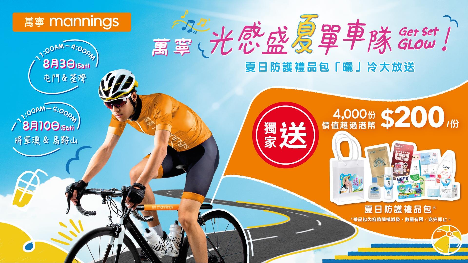 炎炎夏日,最想外出遊玩但又最易被曬傷!萬寧為大家精選一系列夏日防護產品,從防曬美肌、修身保健到呵護滋養,全面照顧大家夏日需求。萬寧將於8月3日及8月10日一連兩個星期六派出「萬寧光感盛夏單車隊」,巡遊香港多個熱門遊玩景點,大派4000份夏日防護禮品包!想知領取詳請,立即睇內文。