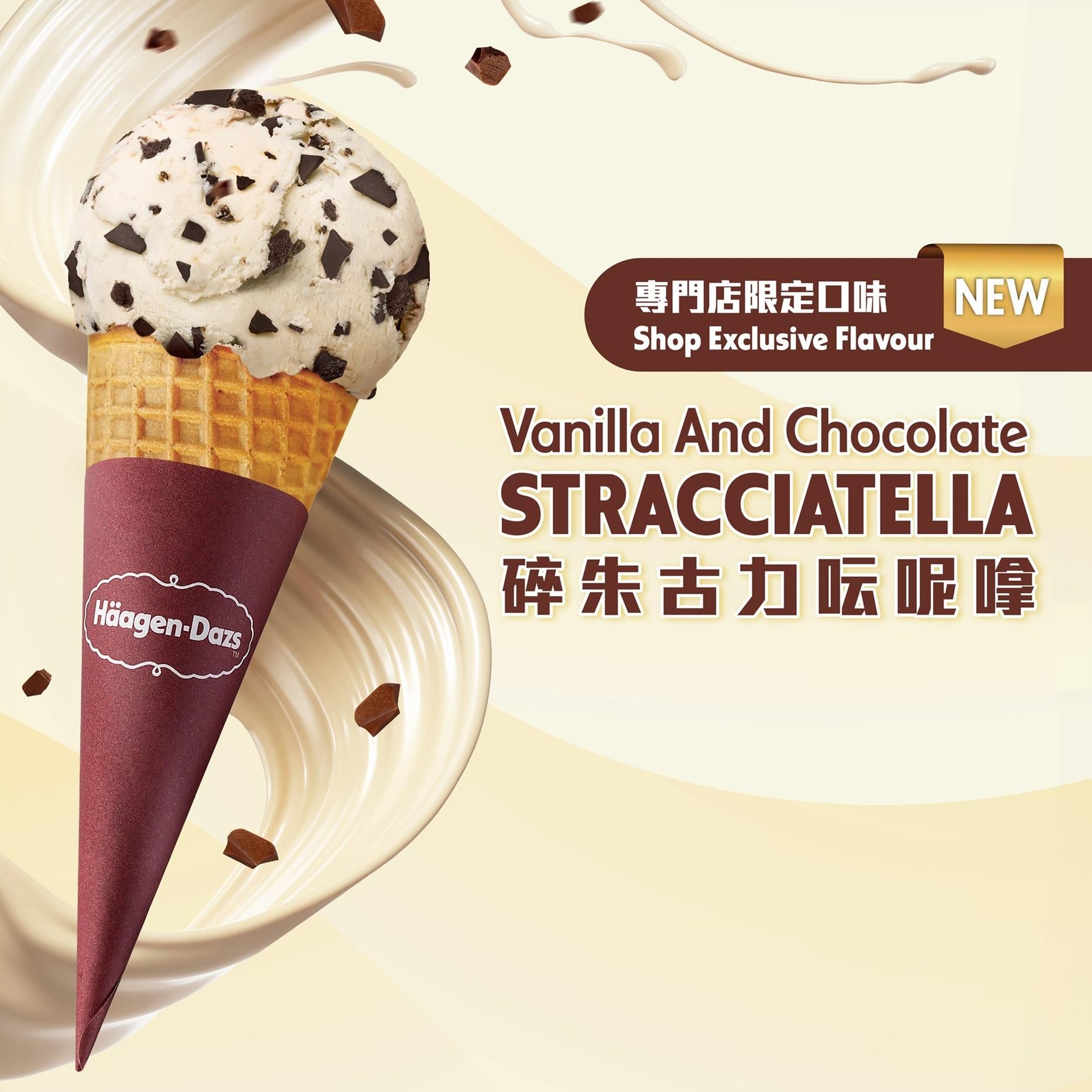 Häagen-Dazs專門店推出獨家口味「碎朱古力呍呢嗱」,馬達加斯加呍呢嗱製作出細膩軟滑的雪糕,再加上大量香濃的朱古力碎,朱古力控必食!