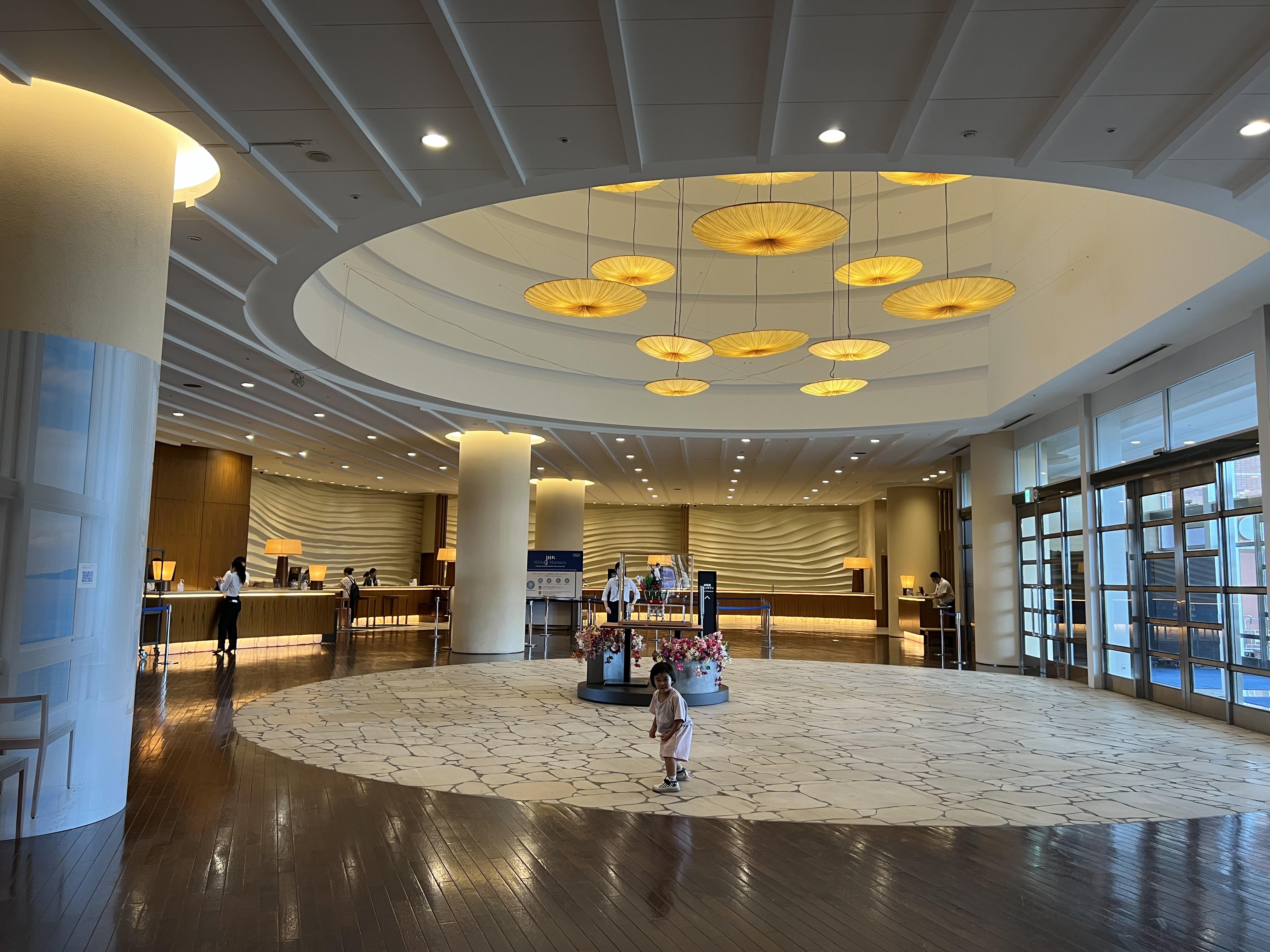 抵埗後,甫進入酒店check in,迎賓大堂空間闊落,樓底勁高,吊燈裝飾大氣美觀,打卡一流!酒店大堂亦連接商場,有齊藥妝、購物,甚至夾公仔舖和貼紙相機商店,且有一間Familymart便利店,可供購買補充品甚至手信。等待入房期間亦可帶小朋友逛逛街、夾公仔等,不怕無聊。
