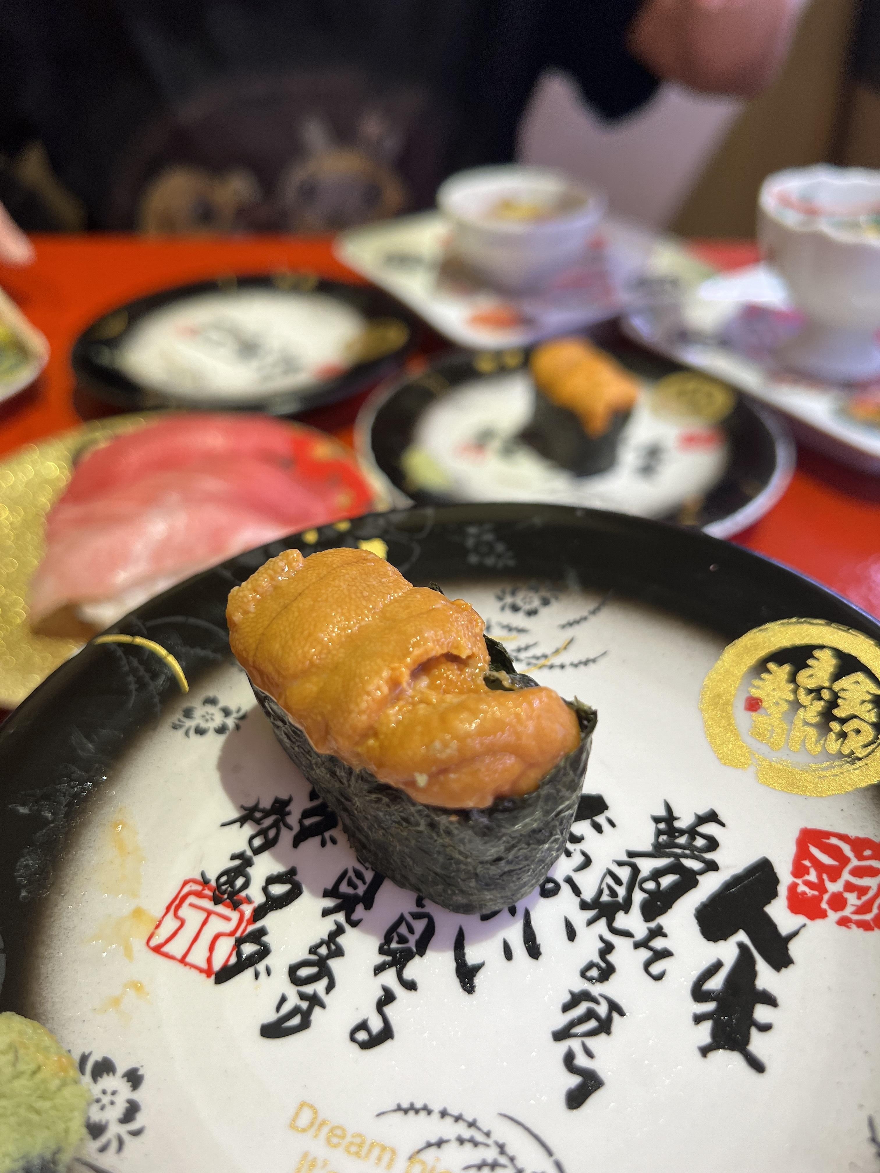 稍作安頓又是時候出發醫肚,酒店連接福岡巨蛋棒球場,也有數間食店如KFC、拉麵店等,但沒有演出的日子休息。沿著棒球場走5分鐘路程,即到達另一個大型商場「MARK IS 福岡 Momochi」,有齊超級市場、Uniquo、GU等大型連鎖商店,也有多間食肆及Food court等,當中集中、西、日、韓美食,有壽司、有居酒屋、也有牛扒及韓燒等,更有一間「九龍點心」,甚有香港風味!第一餐我們選擇了連鎖的「金澤まいもん壽司」迴轉壽司,刺身相當新鮮,海膽入口香甜,好食!另有烏冬、茶碗蒸等熟食供小朋友選擇,再來一個巴斯克蛋糕作飯後甜品,小朋友勁滿足!