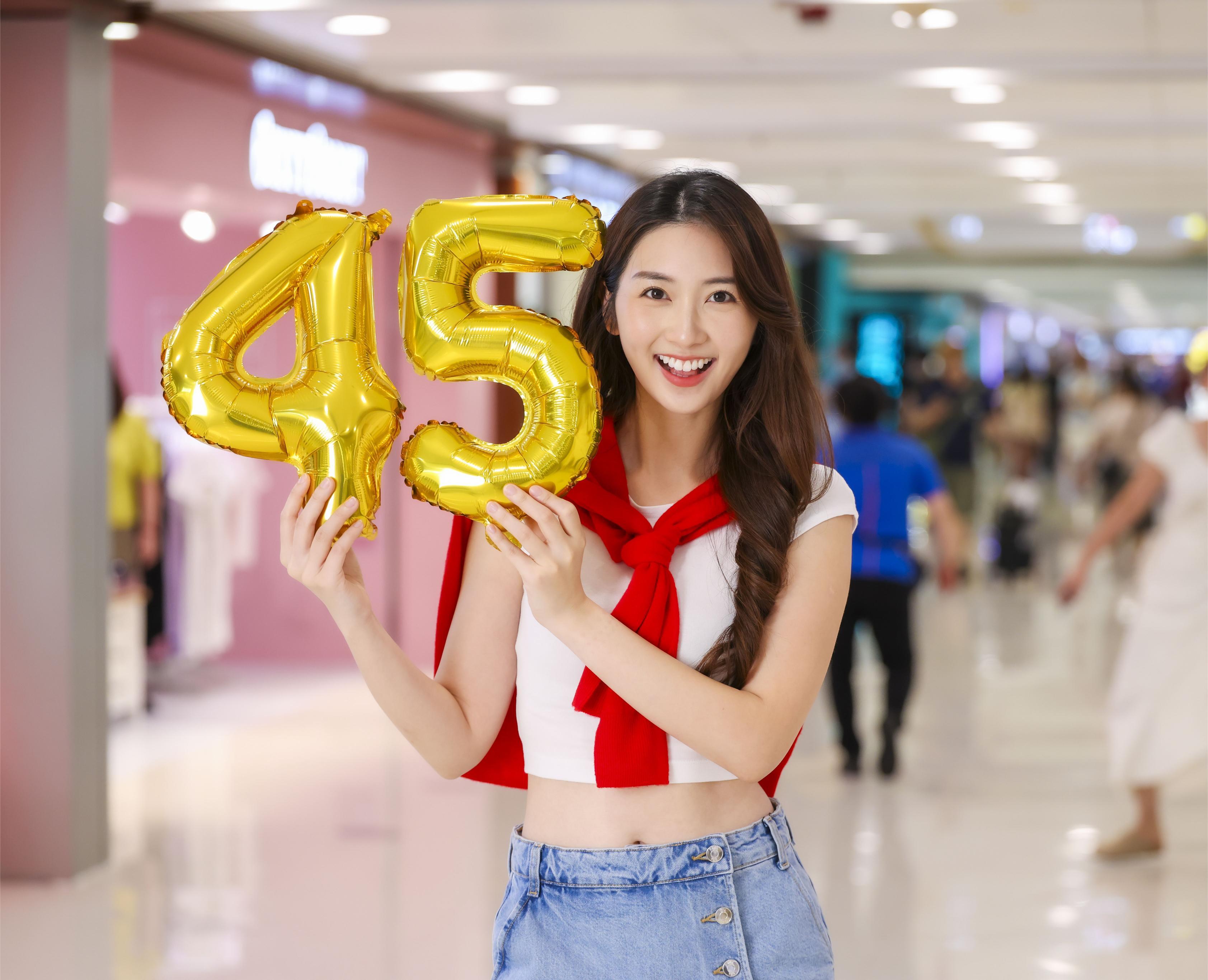 為慶祝港鐵服務香港45周年,港鐵商場推出多項活動及獎賞。顧客於指定港鐵商場消費HK$450,可賺取4,500 MTR分。德福廣場、青衣城、PopCorn、The LOHAS康城及圍方與200多個商戶合作,提供過萬張優惠券,MTR Mobile用戶每週四中午12時可用4,500 MTR分換領優惠券!10月起,青衣城、PopCorn及圍方將舉行晚間音樂會,邀請多位人氣歌手一連3星期齊賀港鐵45周年,想知詳情即睇內文!