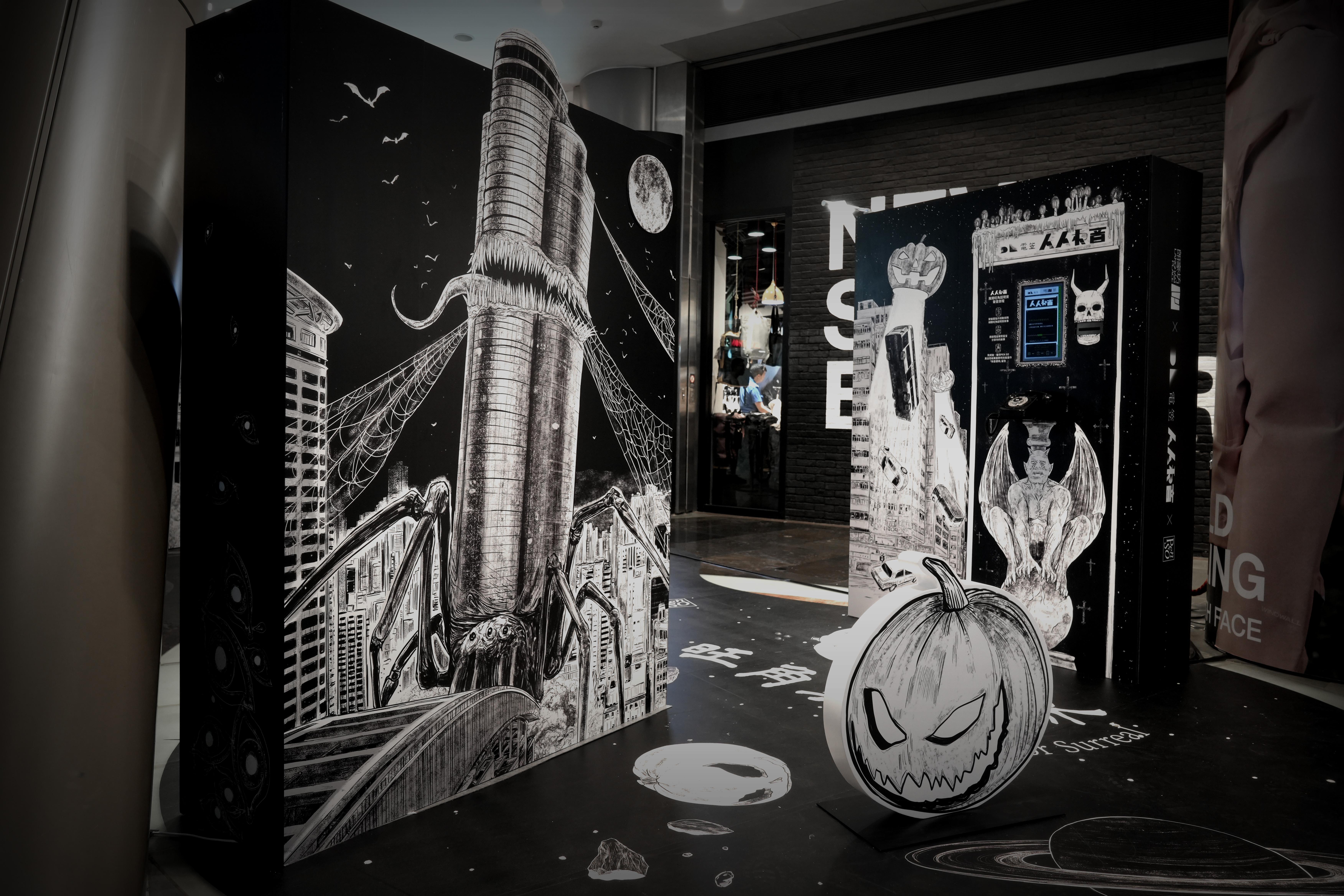 由即日起至10月31日,朗豪坊聯同潮流生活平台【電笠】及國際得獎漫畫家PEN SO在商場7樓打造黑白交織的異想世界。PEN SO以其獨特細緻的筆觸,描繪隱藏於旺角的迷離異象,例如是旺角大街出現南瓜UFO吸走途人和巴士等超現實畫作,以衝擊視覺帶你出走現實。