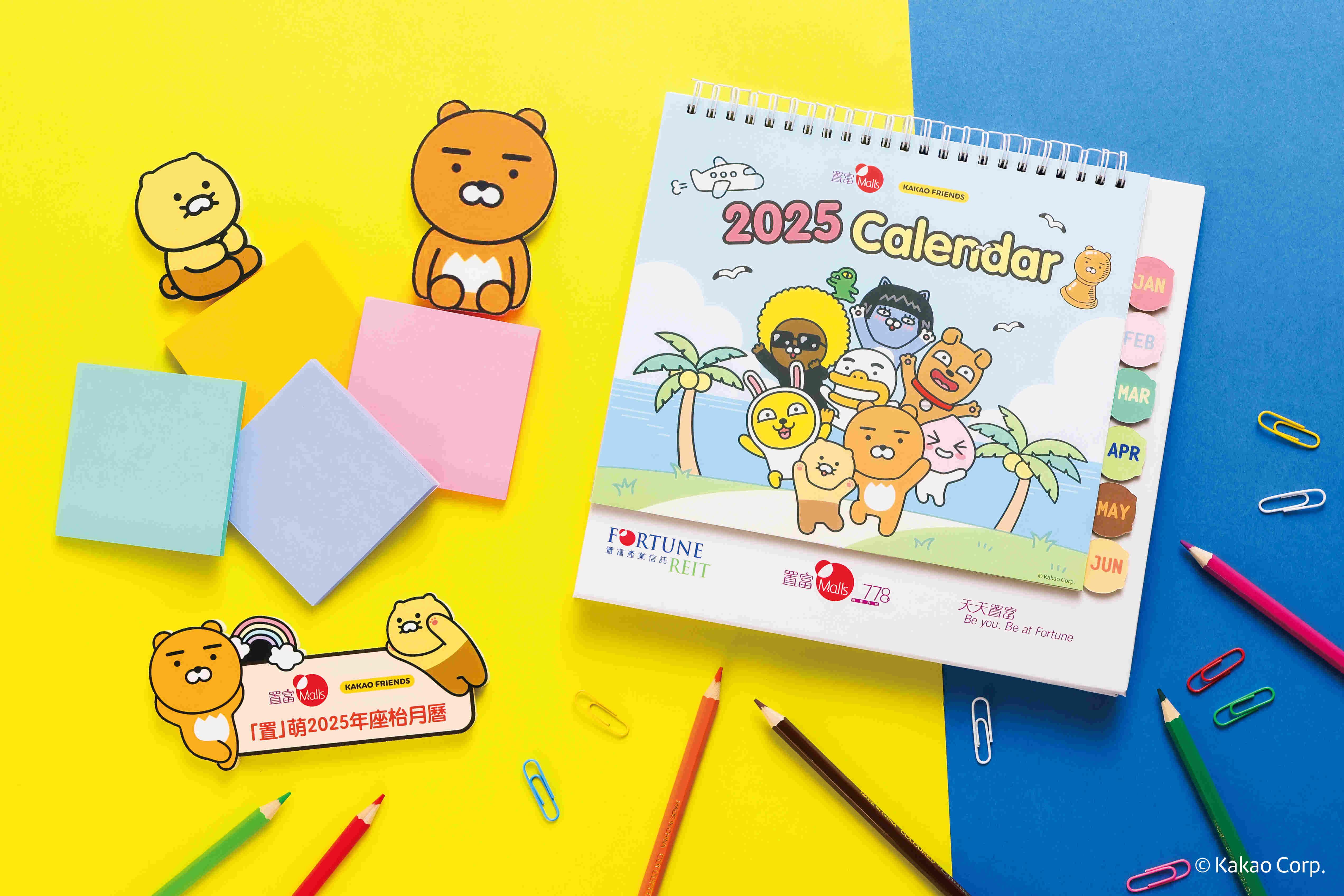 另外,Fortune+會員凡由2024年9月21日起,於置富Malls以下指定單一商場*內任何2間不同商戶累積消費滿$400,包括$300或以上的電子貨幣 (信用卡、易辦事、八達通、銀聯卡及手機支付),或到Fortune Malls App使用Point+即可換領Kakao Friends 「置」萌2025年座枱月曆,有助好好規劃2025年。