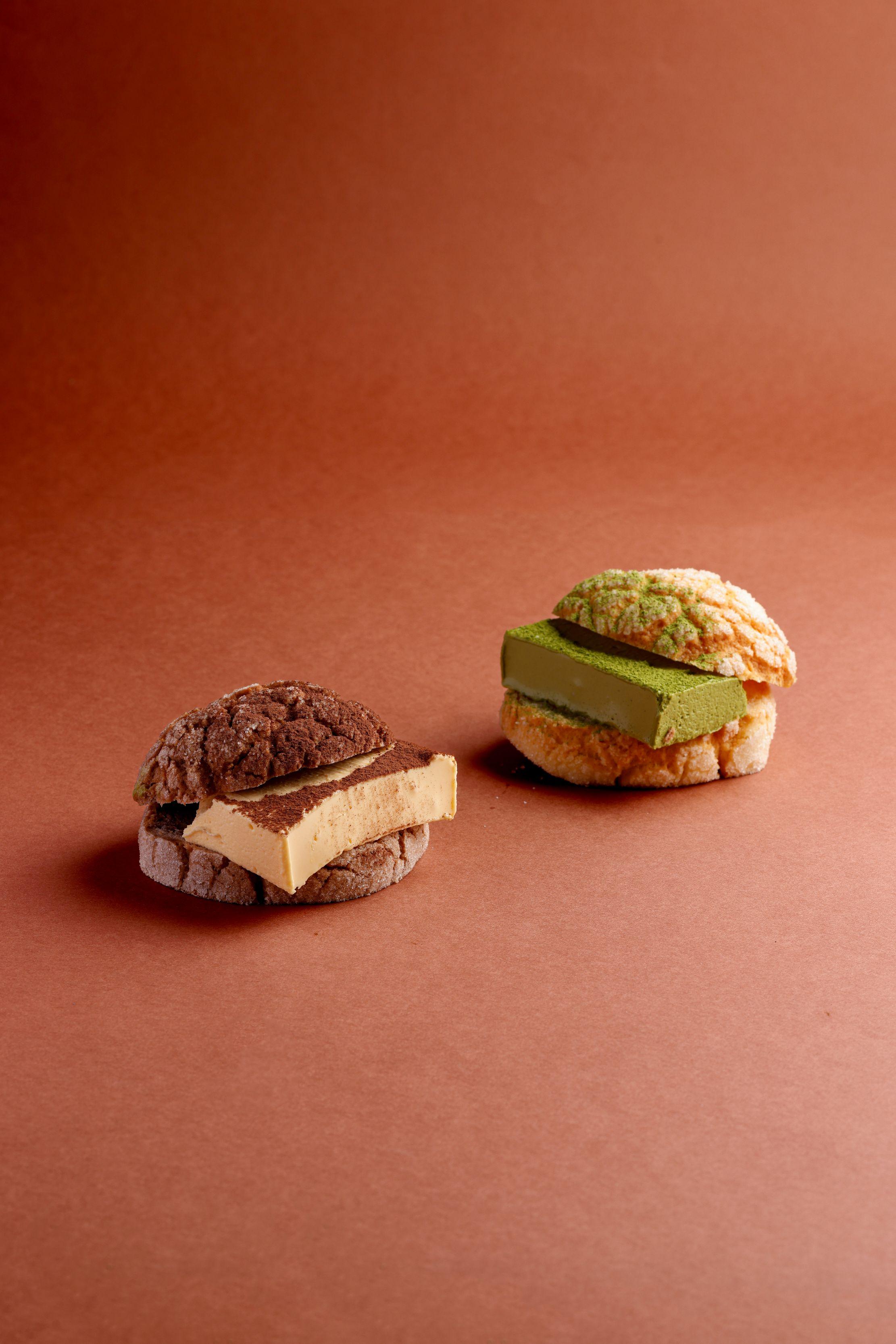 還有以港式菠蘿油為靈感的「提拉米蘇蜜瓜包系列」,分別有兩個口味 -「日式提拉米蘇蜜瓜包($48)」以朱古力蜜瓜包夾着原味的提拉米蘇,用馬斯卡彭芝士 (Mascarpone) 製成如絲細滑的忌廉芝士;另一個口味為「抹茶提拉米蘇蜜瓜包($52)」,用原味蜜瓜包夾着抹茶味的馬斯卡彭忌廉,抹茶味香醇突出。提拉米蘇蜜瓜包限量供應,每日每款限定 20 個,售完即止。