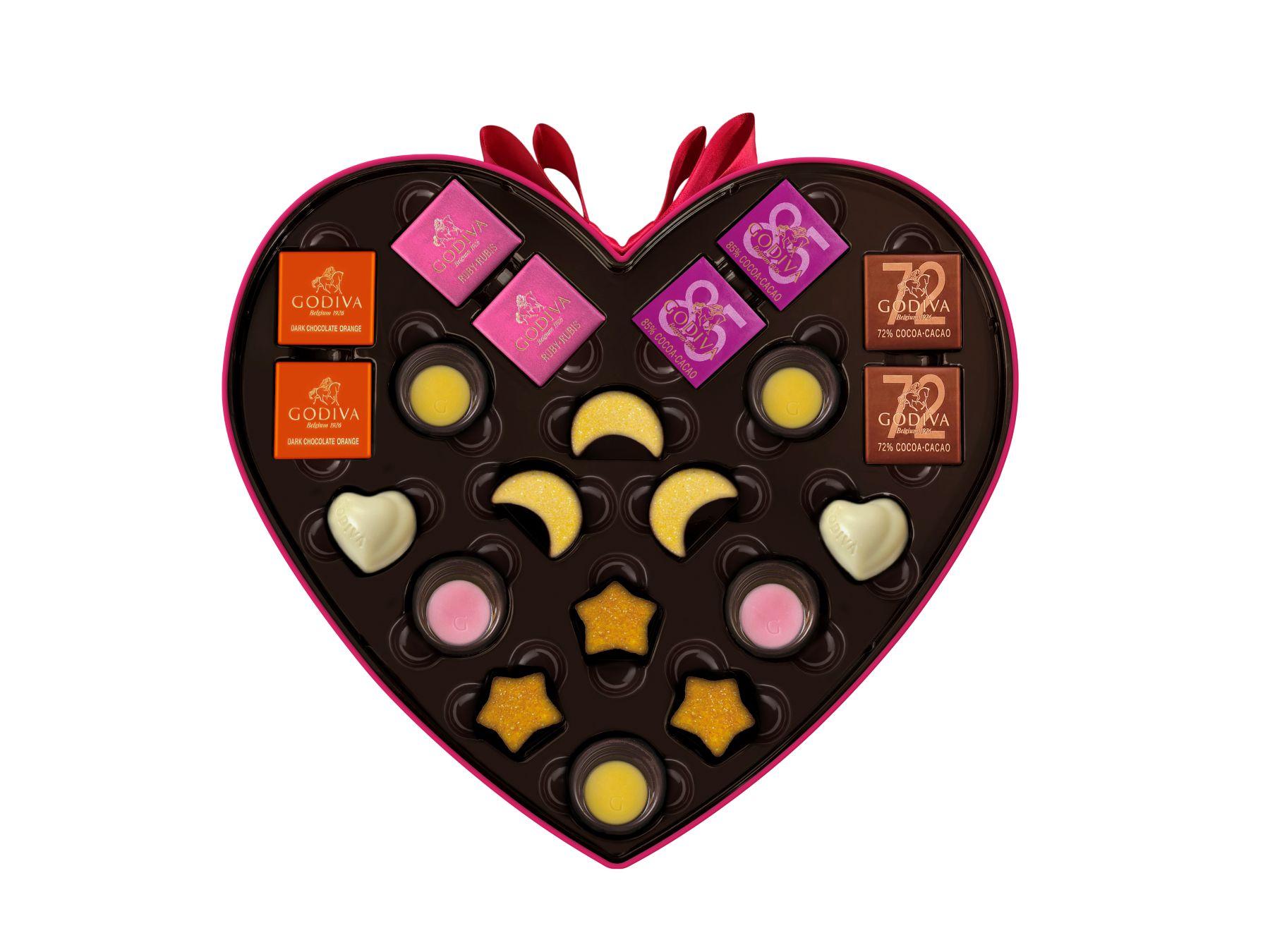 馮允謙Jay Fung透過GODIVA巧克力祝福每一對情人甜蜜幸福。 巧克力心形禮盒29顆裝 $999 巧克力心形禮盒29顆裝 $999 蜂蜜核桃星形巧克力 杏仁夾心新月造型巧克力 巧克力心形禮盒9顆裝 $299 情人節專屬優惠:購買巧克力心形禮盒15顆裝,可獲贈GODIVA香氛蠟燭套裝1套。凡購買巧克力心形禮盒29顆裝,則可獲贈巧克力軟雪糕券2張。