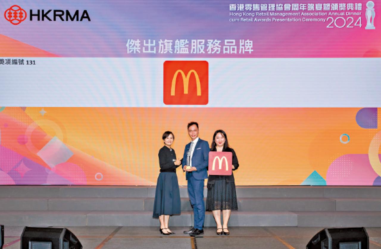香港麥當勞在HKRMA年度頒獎禮中獲獎眾多,圖為「傑出服務獎 - 傑出旗艦服務品牌獎」得獎照片。