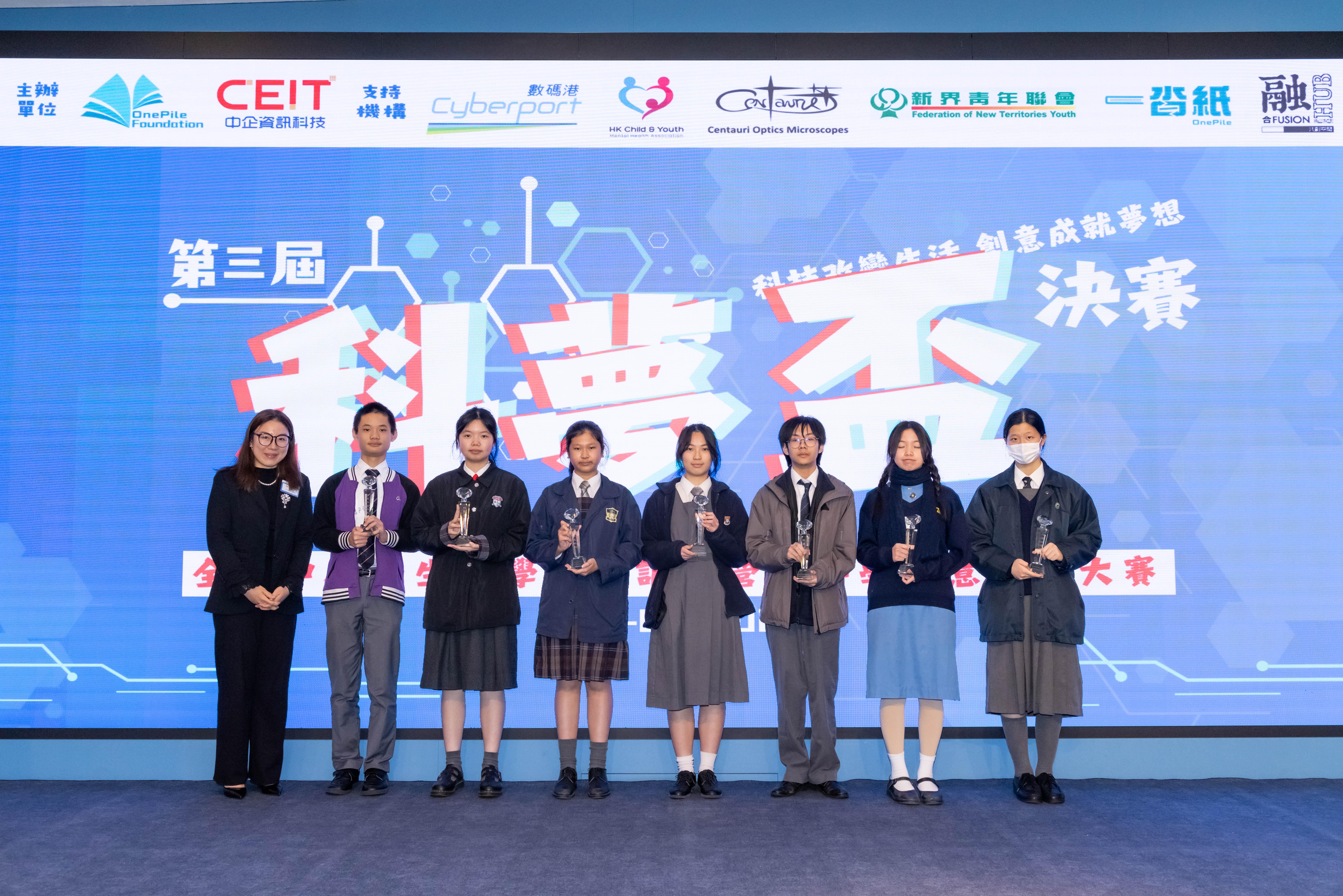 獲得第三屆科夢盃全港創科小英雄獎盃的中學組隊伍。