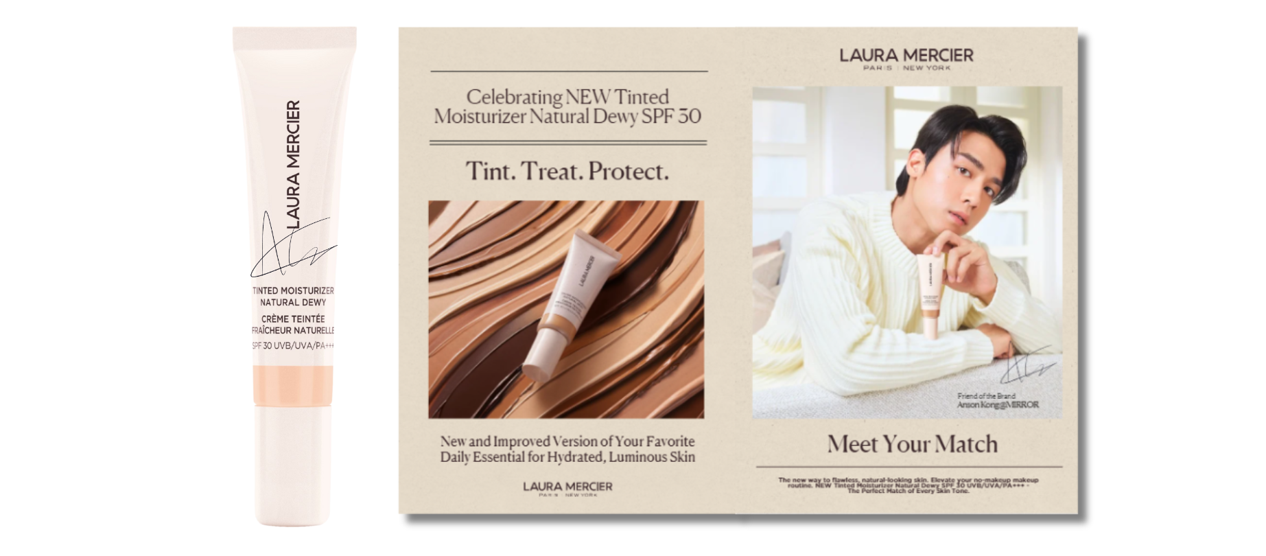 Laura Mercier再度與MIRROR副隊長Anson Kong江𤒹生合作,拍攝「The Best Gets Better」為主題的全新廣告影片,宣傳最新推出的水光修護輕粉底霜Tinted Moisturizer Natural Dewy。品牌同時推出「The Best Gets Better 有獎活動」,生粉更有機會獲得AK親筆簽名輕粉底霜及一系列Laura Mercier X AK的限定紀念品!