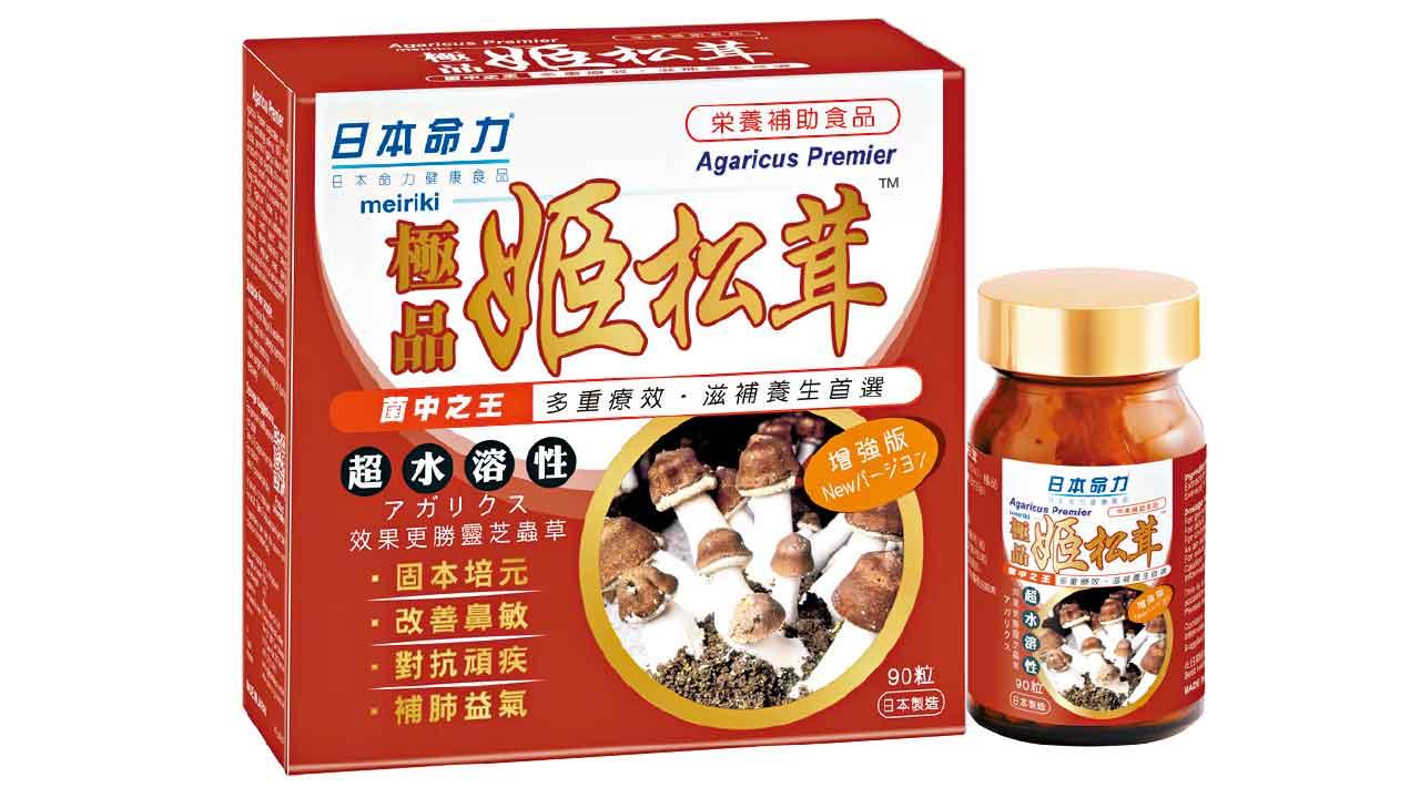 日本命力「極品姬松茸」被專家認為是能提高免疫力的茸類 ,含獨有β-葡聚醣及麥角固醇,亦有蛋白多醣體、多種維他命、礦物質、食物纖維等營養成分,有效激活免疫系統。產品更採用85%子實體和15%菌絲體,達到100%水溶性迅速吸收,助您提升身體機能,改善體質,增強免疫力及呼吸道健康。