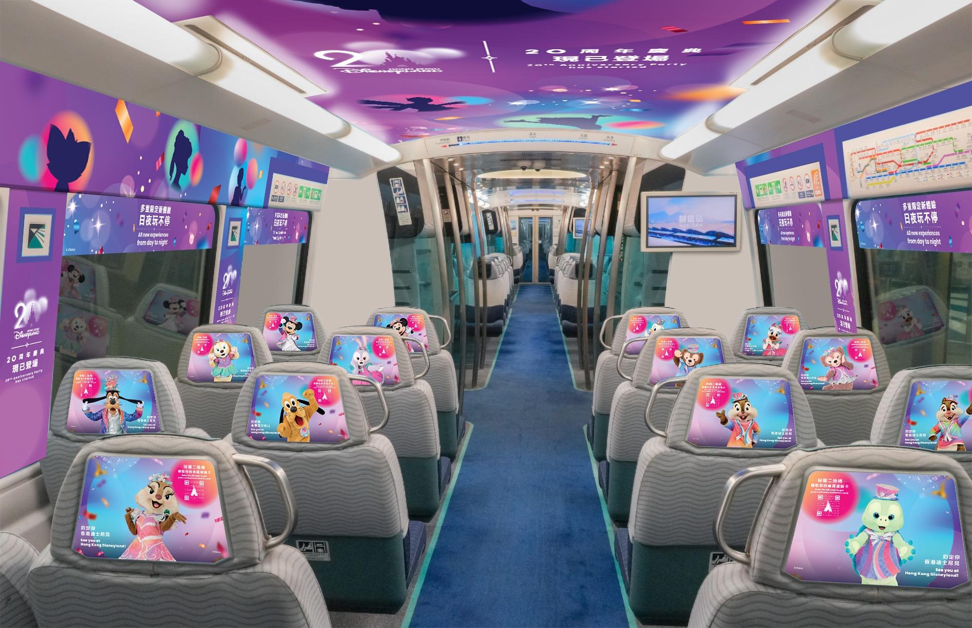 另外,「機場快綫迪士尼20周年主題列車」由2025年6月26日起至9月17日啟程,行駛香港站至博覽館站。乘客於周二至日13:43、 14:53、16:02於香港站登上機場快綫,即可體驗這趟奇妙之旅。而「機場快綫大熊貓主題列車」則繼續行駛香港站至博覽館站。