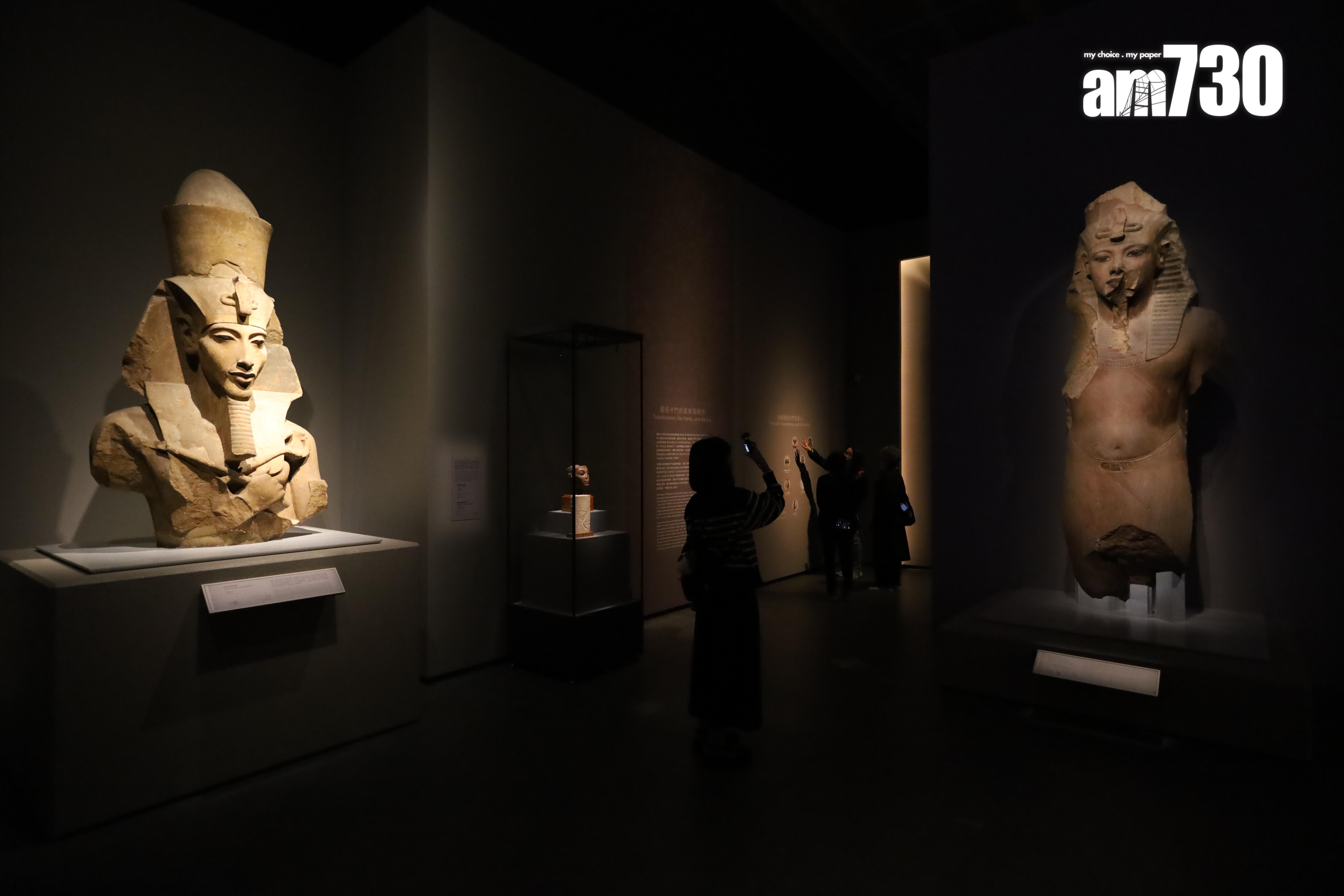 圖坦卡門是世界上最著名的法老。圖坦卡門在18歲離世後,便被後人從法老表中刪除名字,故此在過去的盜墓潮中避過一劫,成為少數保存完好的陵墓。因此出土大量完整文物及珍寶,大大推動了後世對古埃及的考古工作。圖坦卡門巨像原高5米,展內更以投射技術還原巨像殘缺部分,非常震撼。