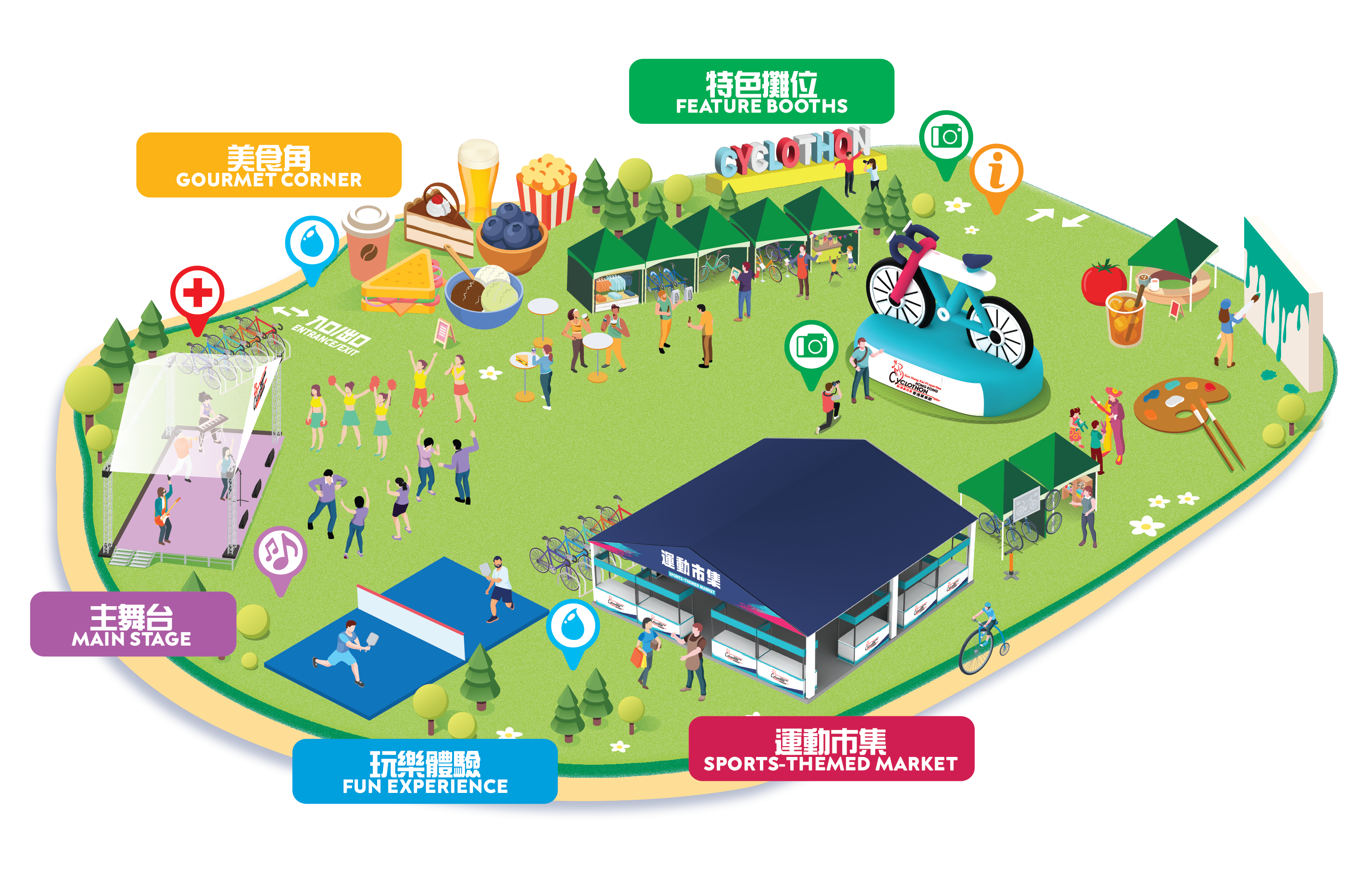 嘉年華的主舞台將帶來全天候表演,包括高輪單車吸睛演出。另邀請環法「衝刺王」卡雲迪殊(Mark Cavendish)及全運會「三金皇后」李思穎到場分享騎行與比賽心得,車迷不容錯過。