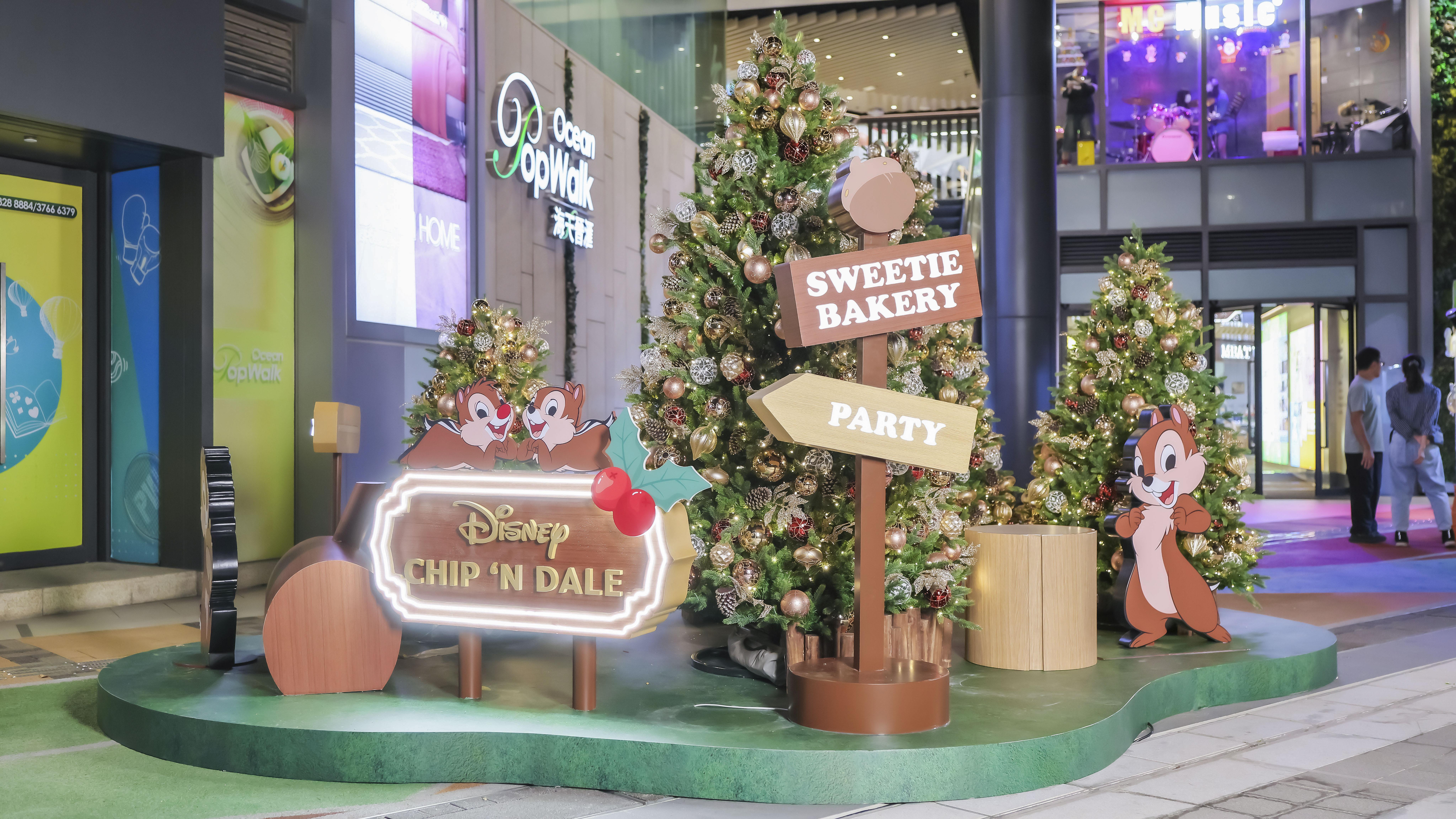 PopWalk 以森林風主題打造「聖誕の森烘焙屋」,在 2 期中庭呈現松果、麵包、果仁等造景,讓大家走進 Chip ‘n’ Dale 的烘焙小世界。3 米高的發光松果森林更延伸至 3 期及 Ocean PopWalk 長廊,組成節日打卡路線,最後去到 1 期的「森林焗爐屋」裏,感受滿滿聖誕氣氛。