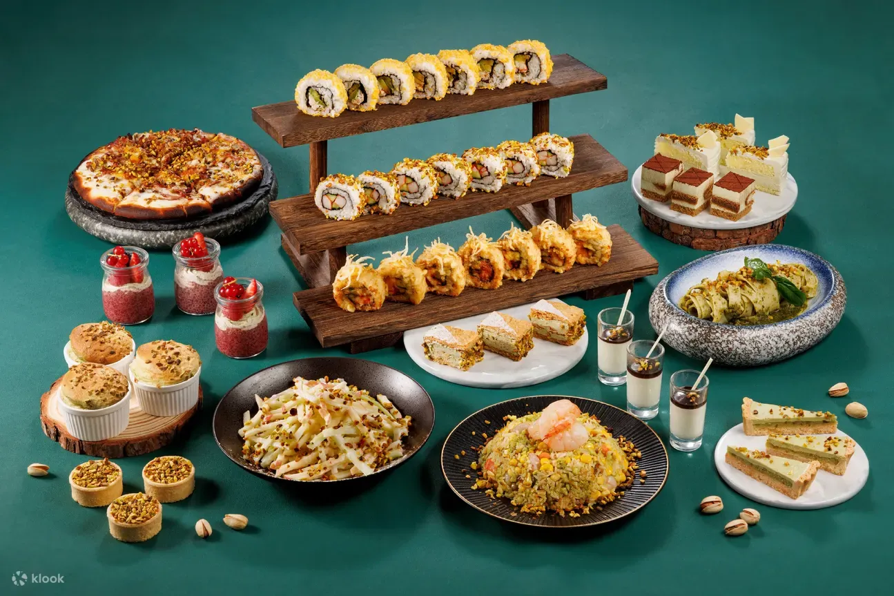香港百樂酒店推出聖誕下午茶自助餐,以開心果為主題,將其融入多款鹹甜料理,為節日添上獨特風味。鹹點包括開心果入饌的沙律、薄餅、意粉及多款創意壽司,口味清新又有層次。甜點方面同樣以開心果為亮點,帶來多款蛋糕、酥點及甜品,香氣濃郁,選擇豐富。自助餐還提供果汁、咖啡及茶無限暢飲,讓賓客輕鬆享受節日午後時光。