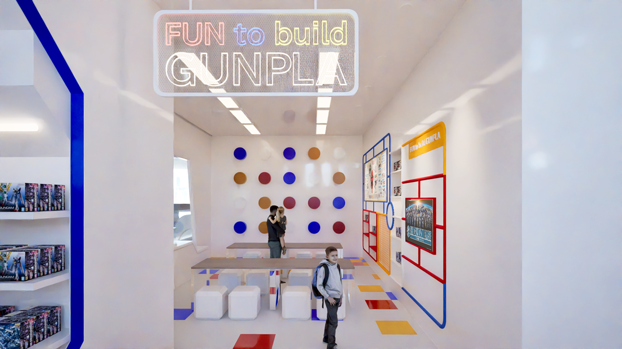 THE GUNDAM BASE設置以高達模型工廠為主題的互動體驗區,重塑Bandai模型生產線。