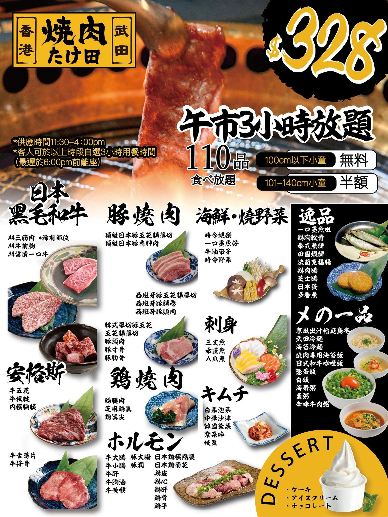 日本知名連鎖燒肉店「燒肉武田(焼肉ホルモンたけ田)」上年登陸沙田新城市廣場後,一直深受港人歡迎。店舖近日推出全新日本黑毛和牛午市燒肉放題優惠,成人只須$328,即可於3小時內嘆盡過百款食材,包括多款日本黑毛和牛A4部位、來自日本北海道的頂級五花腩及即撈海鮮等,非常吸引!