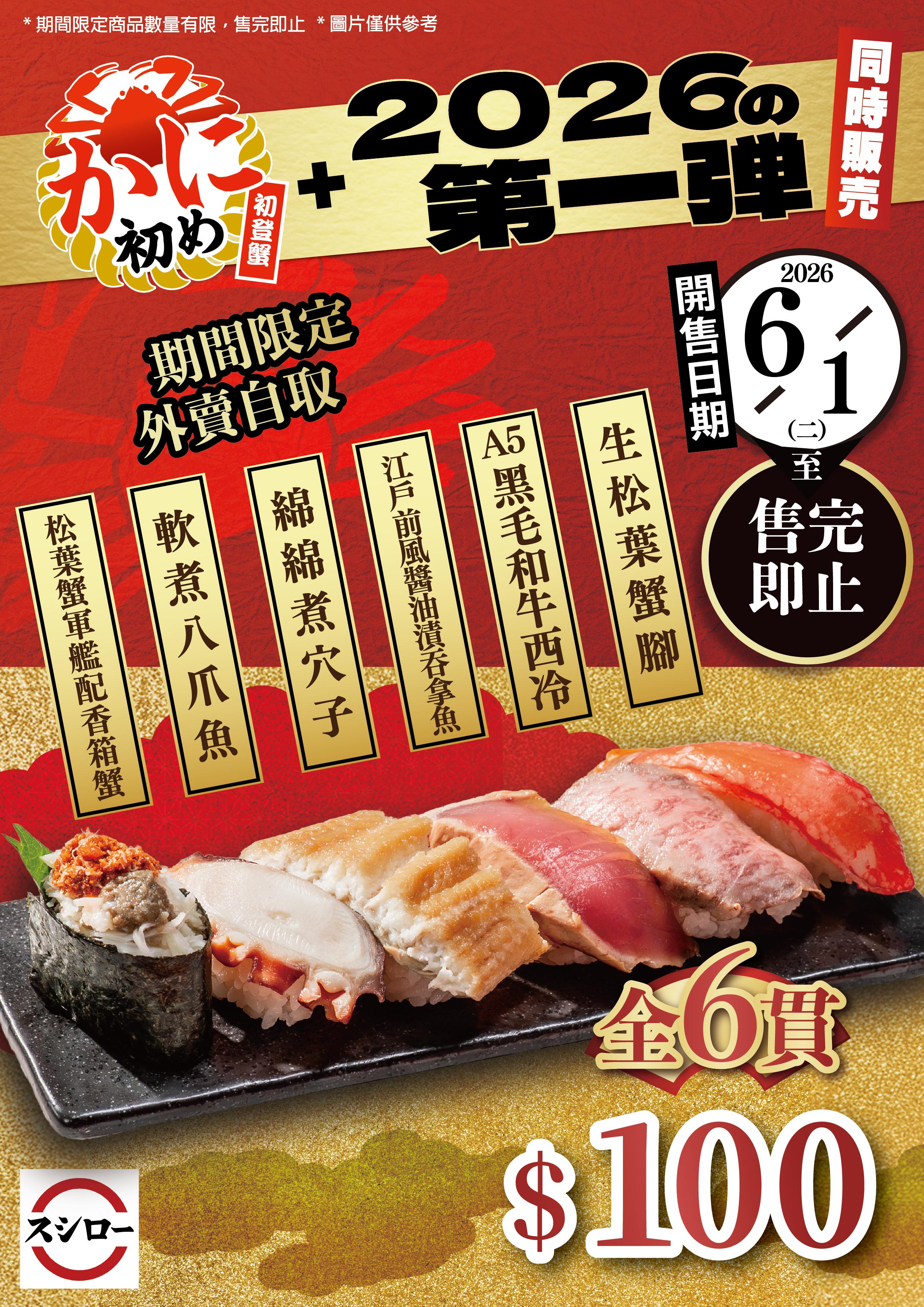 壽司郎嚴選多款頂級食材,精心推出多達15款期間限定商品,其中包括多款首次登場的全新美食。限定商品將於2026年1月6日起,在壽司郎全線分店正式販售,為新一年帶來美味開端,數量有限,售完即止。