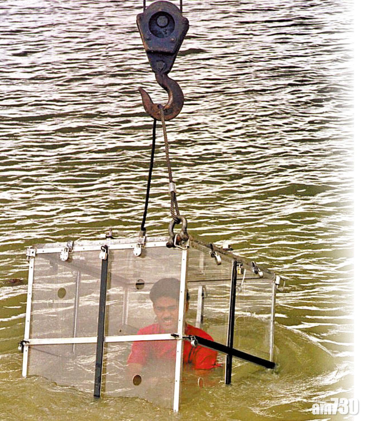 綽號「巫師」的Chanchal Lahiri(40歲),周日早上在恆河支流表演逃脫大師胡迪尼的拿手好戲,以鐵鏈繩索自纏,再困於上了36把鐵鎖的鋼籠內,用吊臂沉降至30呎下水底(圖);惟久久未見脫身上水,在場的家人、觀眾及警方大為緊張,馬上展開搜尋,惜至深夜仍蹤跡杳然。他下水前曾稱「萬一失敗就魔法變悲劇」,可能一語成讖。他於6年前曾作相同表演,6秒即浮上水,卻被觀眾篤爆鐵籠有暗門更遭圍毆。
