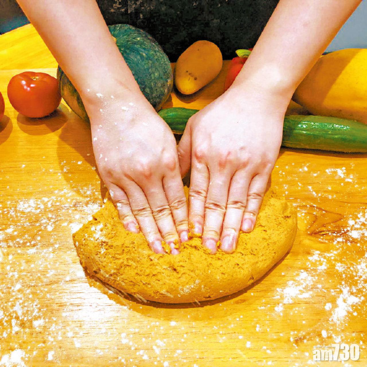 無五辛素食店2DP,研發出以超級食物鷹咀豆粉搓成全素麵糰,炮製成像真度十足的「家香雞」雞塊,更分為素雞胸及素雞鎚!先講麵糰本身製作已夠認真,大廚以鷹咀豆粉、活性小麥粉、豆腐及酵母製成Seitan全麥麵筋粉糰,然後加入日本空運泉水及調味料搓成素雞粉糰,再放入以泉水、蔬菜及香料熬成的高湯1.5小時吸收精華,經2小時發酵,最後才沾上炸粉炸出素「家香雞」,而做雞鎚功夫再多一重,以本地有機鮮腐皮包裹麵糰油炸,店方經多番嘗試,炮製出咬落香脆的「雞皮」,十分有誠意。