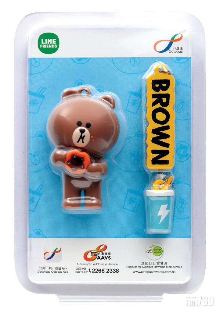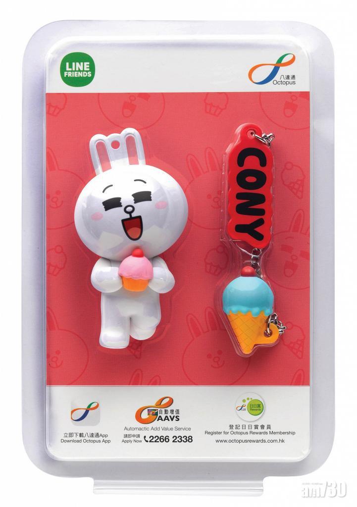 八達通公司繼與比卡超合作後,今次又有新搞作,與LINE FRIENDS合作推出3D卡通八達通,將於三月中旬推出3D卡通八達通,而是次主角為熊大、Choco和Cony兔兔,配飾則以零食作為主題,十分可愛。這批八達通配飾將於2019年3月20日上午7時起,在全線7-Eleven便利店有售,售價為$188。