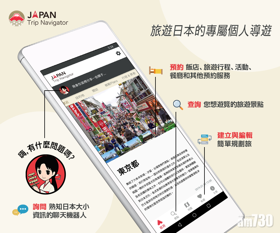 JAPAN Trip Navigator是一個為訪日遊客而設的應用程式,除了提供日本全國47個都道府縣的觀光資訊,合共約1萬個觀光景點攻略,以及250個人氣景點推薦給用家,還有酒店及行程預訂功能。