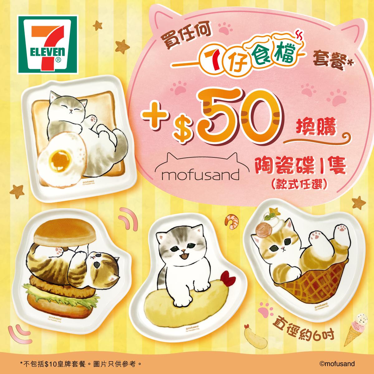 - 7仔食檔:凡購買任何套餐*加$50 即可換購「mofusand陶瓷碟」一隻,4個款式自由選擇