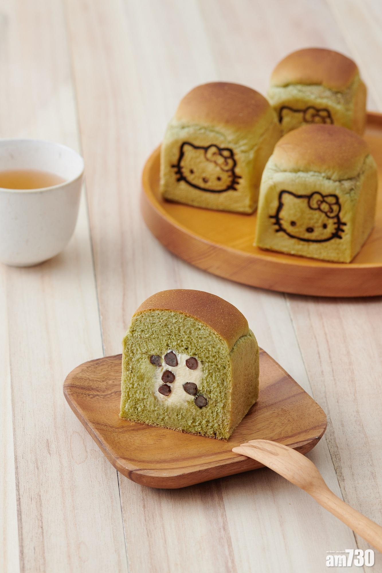 Hello Kitty綠茶紅豆麵包磚,鬆軟綠茶麵包散發淡淡茶香,配上粒粒飽滿綿密的紅豆及軟滑芝士忌廉,豐富口感層次令人回味無窮。$16/只限美心現場烘焙店有售