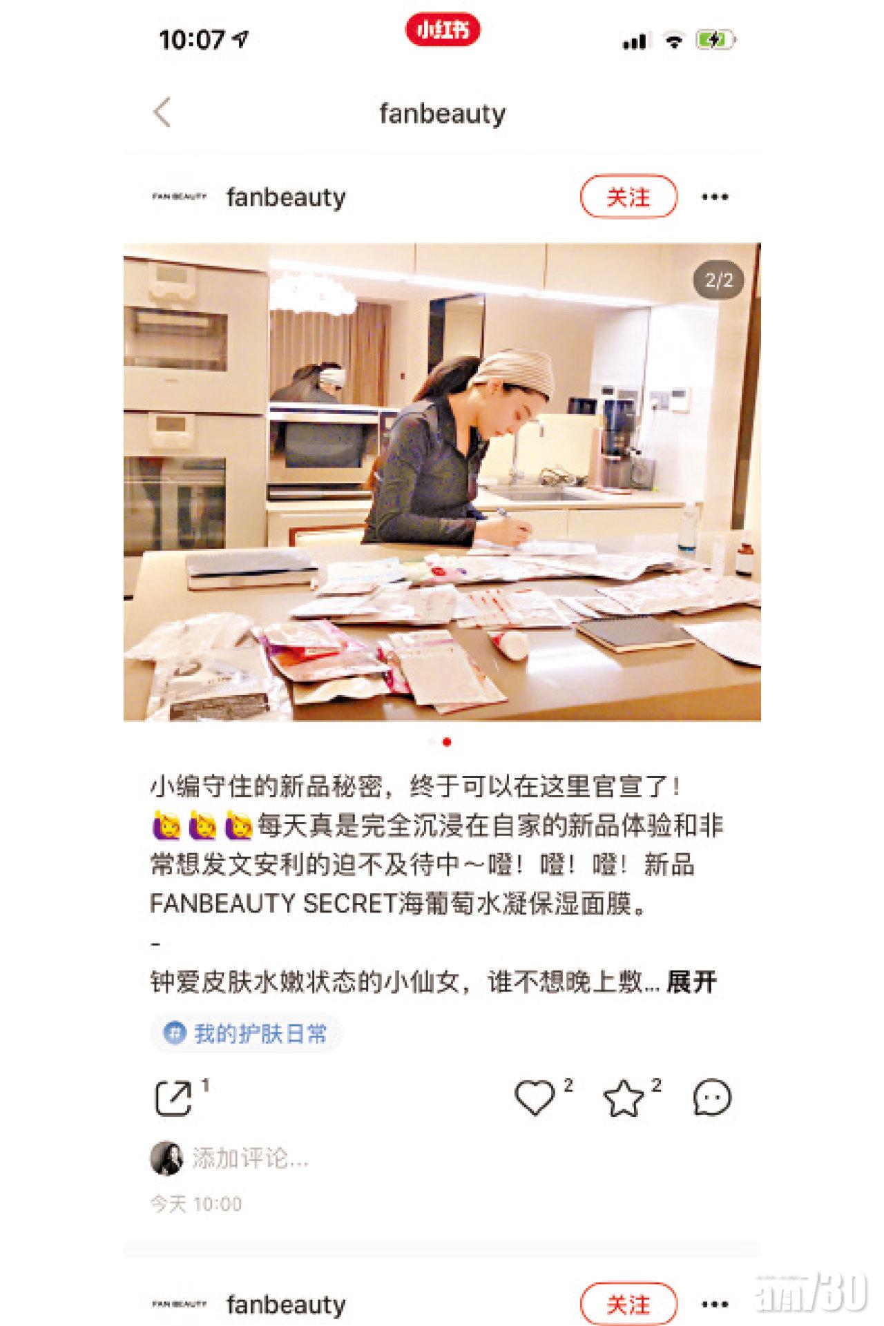 范冰冰為了以最佳狀態示人,採用海葡萄凝水保濕面膜後,於小紅書上分享用後感。