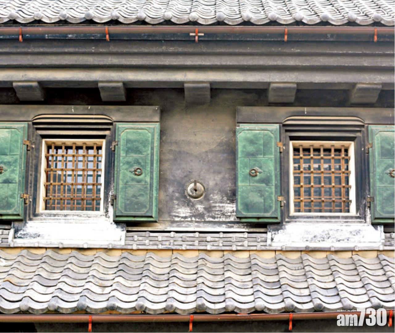 木製古老建築物,配以黑瓦屋頂及簷篷。