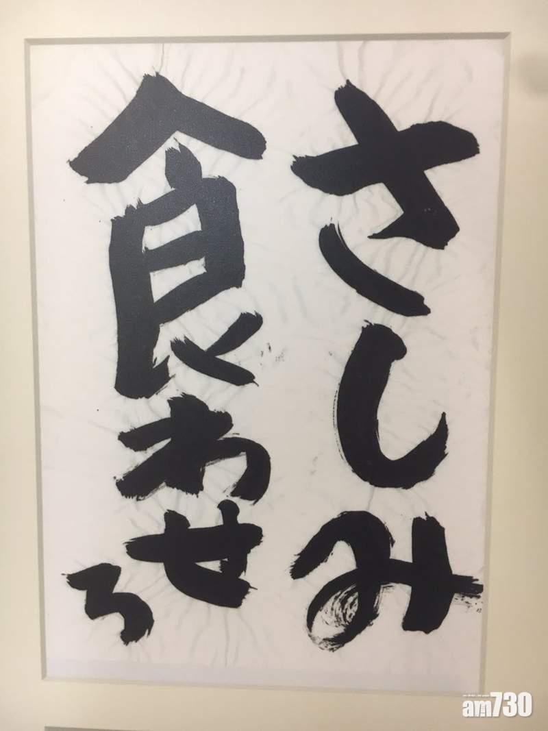呢幅書法出自10歲小朋友野口晴輝之手,佢因為患病而無得食魚生,非常鍾意食魚生嘅佢會一直追問醫生「今日食唔食得魚生?」無奈直到佢離世之前,都無法實現呢個對普通人來講簡單不過嘅願望。