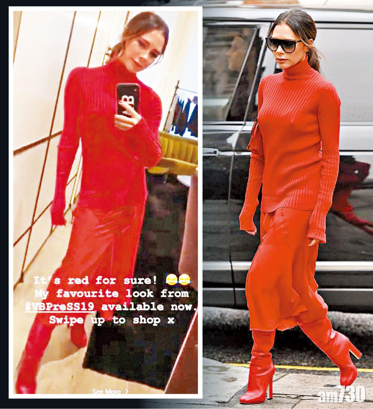 萬人迷碧咸老婆維多利亞,近年專注時裝事業,經常以身示範最新系列,不時在IG分享當做宣傳。她前日著上自家品牌的一套紅色連身長裙,出口術「我下一季最愛的打扮」,不過講到亮點,還是碧咸嫂的胸前飛釘演繹。