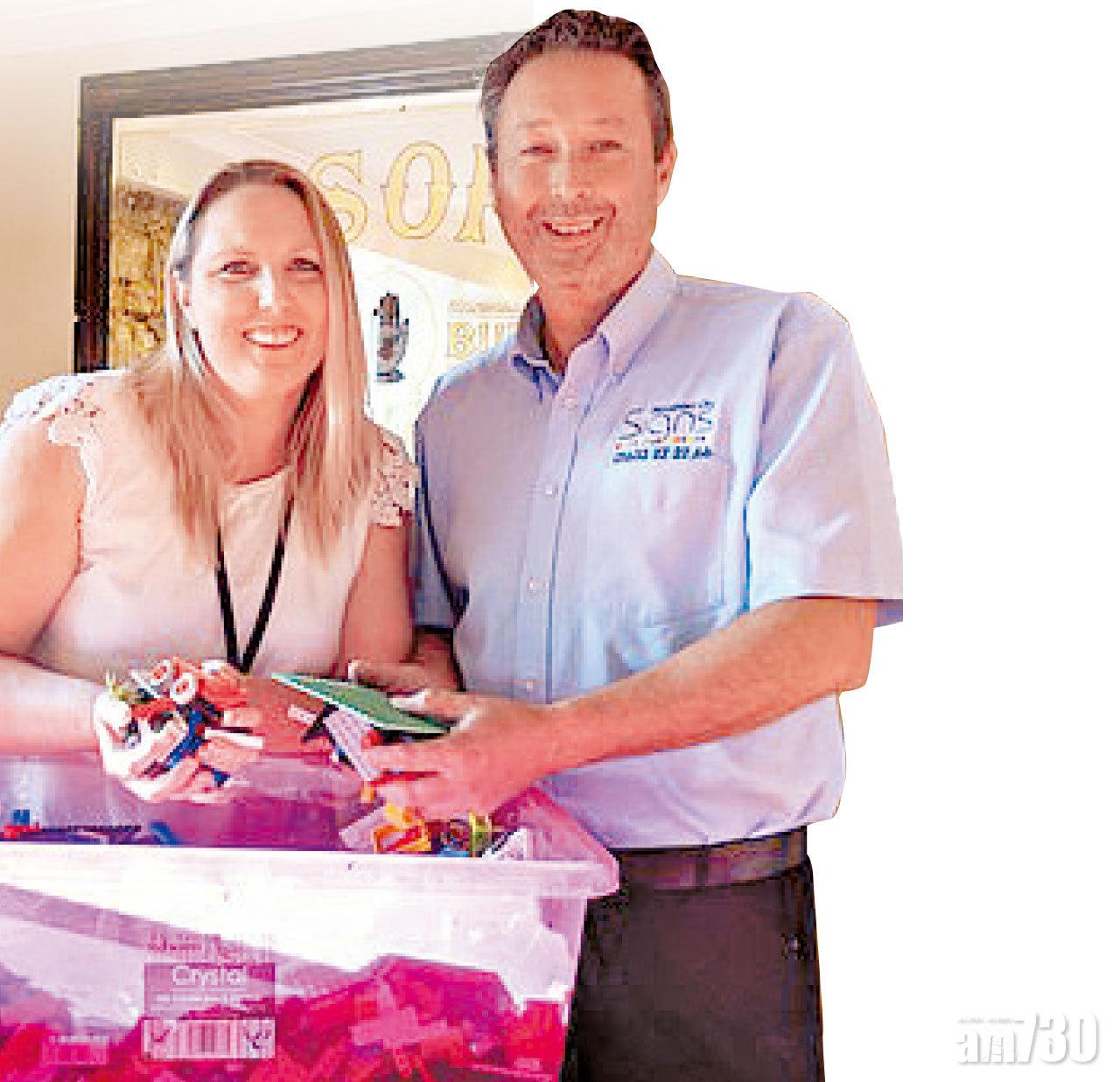 家在威爾斯的Janet Turford(43歲)與伴侶Alan Wilkinson(50歲,圖),去年9月興起重燃童年夢想的反斗念頭:在家中的遊樂室砌一幅樂高牆。他們漫無計劃,亦無圖則就動工,邊砌邊買(Lego)邊構思,今夏終大功告成,砌出這幅10呎長、有暗門、樂高公仔,更有賊仔爬繩梯警察從後追的滑稽場景大製作(花費逾2萬港元)。兩人形容「窩心合作10個月,分娩出這件美妙愛情結晶」,而話題、情趣與默契亦大增,實在是意外收穫。他倆津津樂道:「朋友上門作客,這道愛牆必不斷觸發話題,永無冷場。算是個bonus吧。」