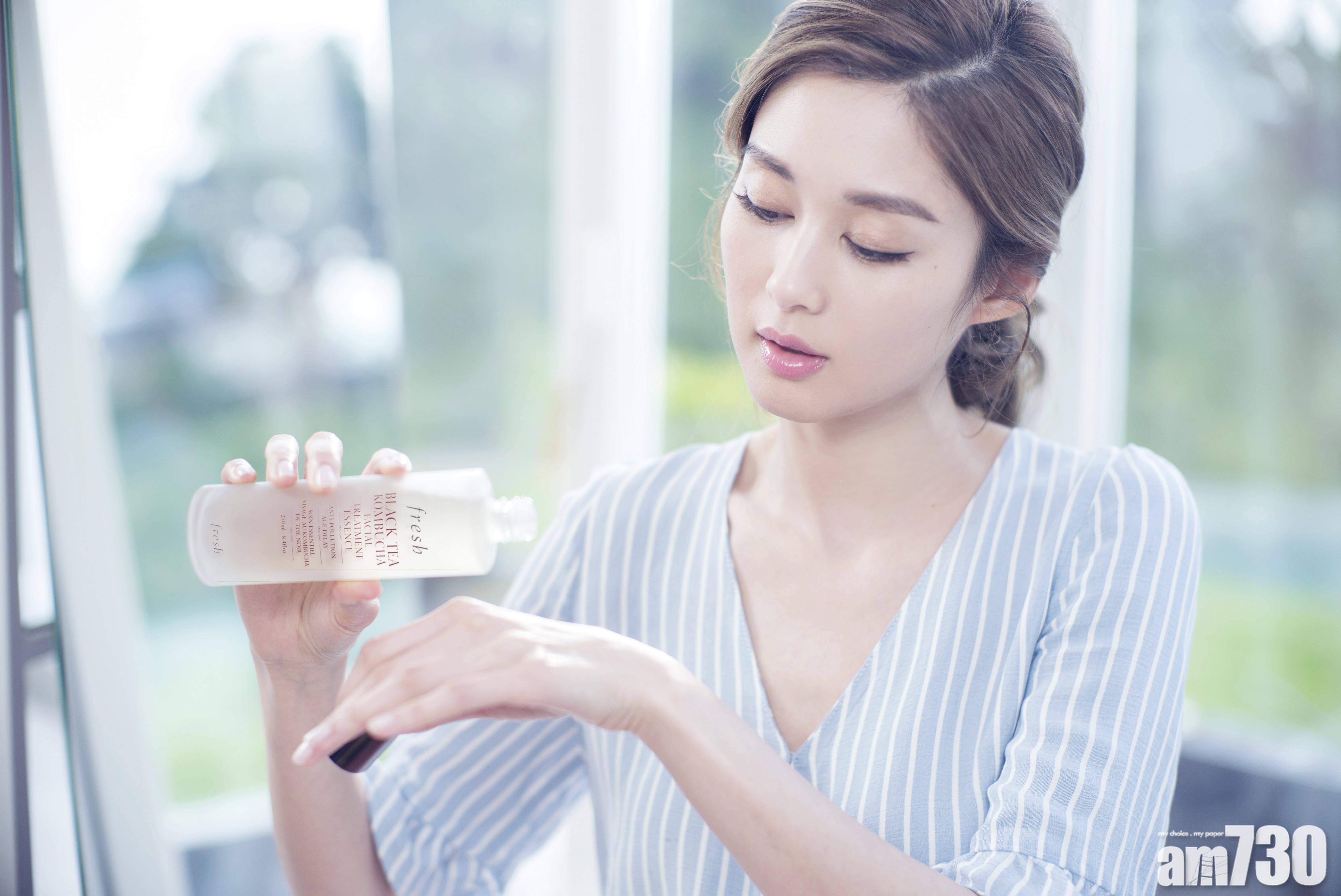 Eliza亦大讚精華水質地輕登易吸,「污染無可避免,精華水一枝有齊8大功效,輕拍在面上,感到精華水好快吸收、十分水潤,看起來好飽滿,我也很喜歡淡淡的紅茶香味。」
