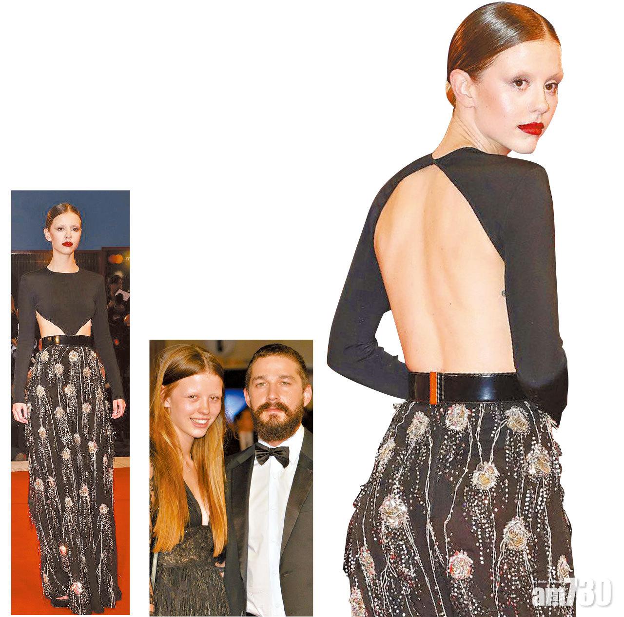 模特兒出生、身高176公分的美亞哥夫,美亞自2013年拍首部電影《性上癮》,跟拍檔兼《變形金剛》系列男星沙拉保夫(Shia LaBeouf)撻著,拍拖4年後結婚。當日這位性感人妻身上的黑色連身裙,上半身絲質長袖圓領,正面看露腰及助骨,滲出高貴美感。但當華麗轉身後,大露背騷出白滑美肌,性感迫人。下半身的高腰裙綴以金色刺繡,設計師Clare Waight Keller利用綻放煙花般的圖案,襯托出黑色的簡約美,令這個黑金組合在紅氈上大放異彩,視覺效果更豐富。
